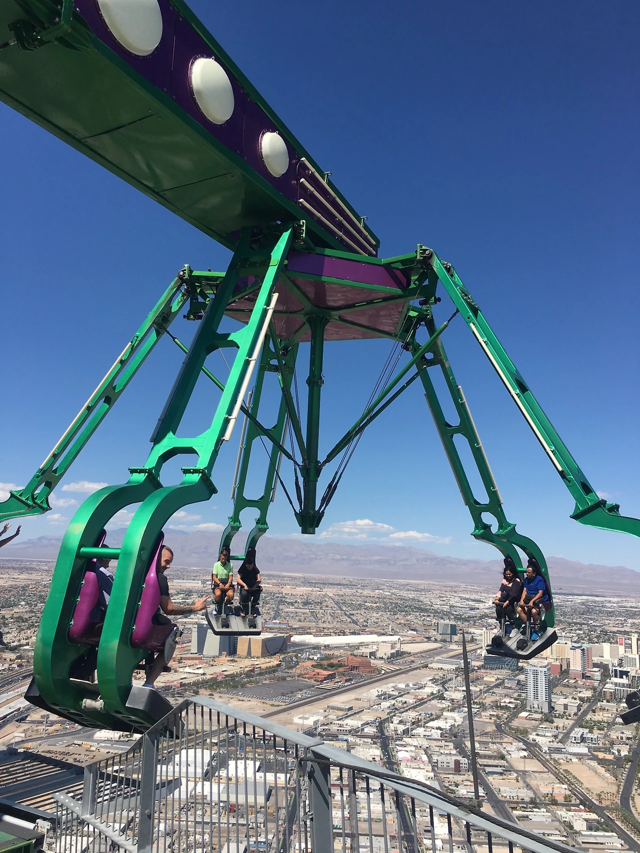 성층권이란 뜻의 ‘스트래토스피어’는 350m 높이의 전망대 ‘스카이포드 SkyPod’ 위에 있는 ‘익스트림 놀이기구 Thrill Rides’가 되시겠다. 라스베이거스에서 가장 높으며 미국에서 다섯 번째로 높은 건물 위에 있는 놀이기구이다. 스트래토스피어는 세계 무서운 놀이기구 톱 10에 들어가며 라스베이거스 여행의 필수 코스로 꼽히곤 한다.