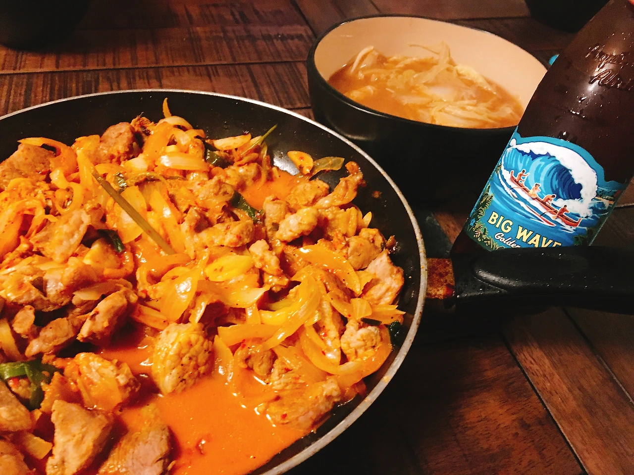 삼 남매와의 여행이 좋은 점은 혼자 여행할 땐 엄두도 내지 못할 음식을 마음껏, 양껏 해 먹을 수 있다는 것. 그것은 바로 김밥. 유치원, 초등학교 소풍 이후로 집에서 만든 적이 없어 김밥은 늘 사 먹는 음식 중 하나였다. 이뽈네는 자주 만들어 먹는 음식이었고, 여기서 해 먹자는 제안에 당황했지만 좋았다. 얼마 만의 집 김밥인가. 한인 마트에서 재료를 사고 숙소로 돌아와 삼 남매의 철저한 분업 속에서 주방은 일사불란하게 움직였다. 나는 김밥 속 재료 손질 담당, 팔두는 밥과 간 맞추기, 이뽈은 재료 볶기, 루나 언니는 김밥 말기와 마무리. 거기에 떡볶이도 곁들이니 이것이 푸드 테라피였다. 라스베이거스 한인 뷔페에서도 느꼈지만 팔두는 고기를 굽는 데 출중한 재능을 뽐내었고 그가 구운 스테이크에 와인을 한 잔 곁들이면 ‘행복하다’는 말이 절로 나왔다. 미트볼 파스타가 먹고 싶어 만든 볼로냐 파스타. 면이 잘 안 보일 정도로 다진 고기를 아낌없이 팍팍 넣어서 정말 맛있었다. ‘고칼로리=맛있음’이 이렇게 증명되었다. 사이드 디시는 치즈 듬뿍 콘치즈였고 함께 마신 하와이 맥주 ‘빅 웨이브’까지 완벽한 식사였다. 매일매일 입이 즐거우니 내일 어디 갈까라는 고민보다 내일 뭐 먹지가 더 중요한 화두가 되었다. 매일매일 축하할 일은 없었지만 우리는 성실히 성대한 잔치를 벌였다.