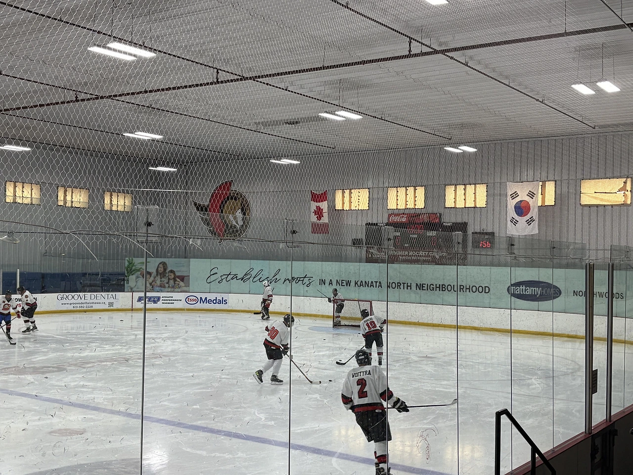 나는 아이들과 함께 캐나다의 스포츠를 경험하고자 이곳에 방문했다. Bell Sensplex는 3개의 아이스링크장과 1개의 인조잔디 실내구장으로 구성돼 있었다. 아이들을 위한 코스, 여자아이들을 위한 코스 등 다양한 프로그램이 마련돼 있었고, 굿즈샵도 있었다. 난생처음 방문한 아이스하키장은 생각보다 자유롭고 즐거운 분위기를 띠었다. 한쪽 끝엔 태극기와 캐나다국기가 걸려있었고, 관객석 맞은편엔 아니운서들이 앉아. 경기 중계를 준비하고 있었다.