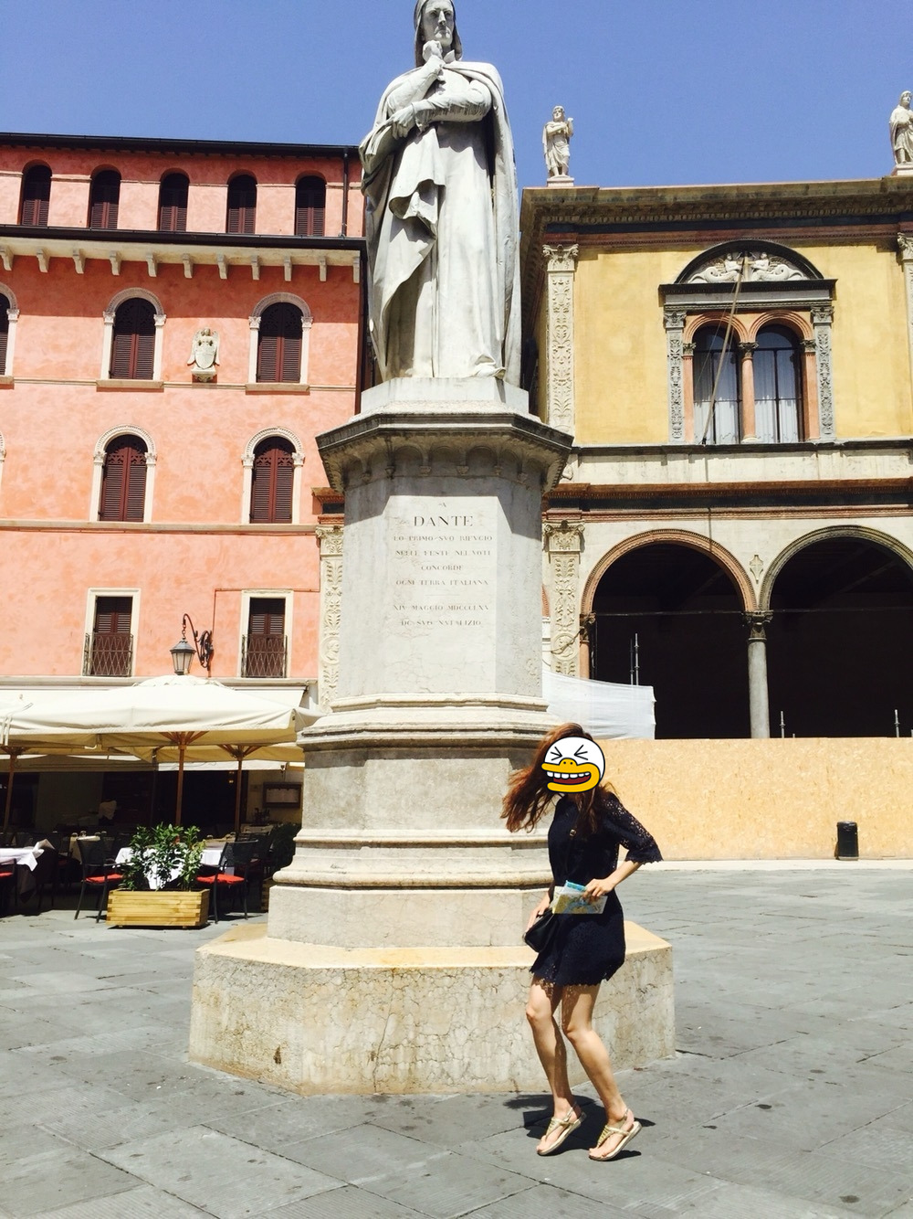 J: 나는 사실 단테를 엄청 좋아하는 사람은 아니거든요? 근데 왜 이탈리아 갔을 때는 단테에 꽂혀있었는지 모르겠어요. 뭐 어쨌든! 우리가 피렌체와 베로나 갔을 때 단테의 흔적을 찾아서 다녔잖아요. 사진도 찍고.