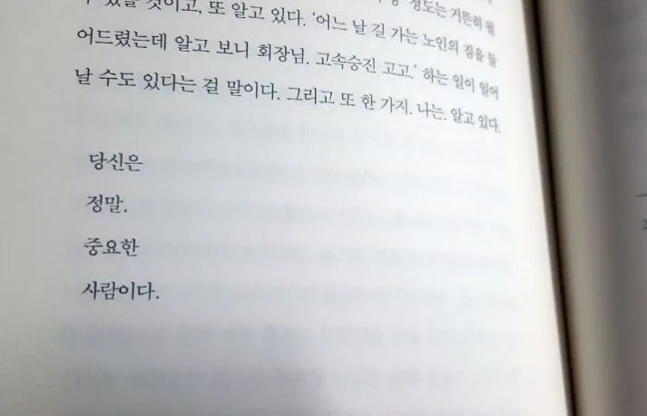 당신 지금 아주 잘 하고 계신 거다, 쓸 만한 인간이다, 다 잘 될거다, 당신은 정말 중요한 사람이다. 어쩌면 지금의 우리들에게 가장 필요한 말일지도 모른다. 어디로 가는 건지 알지 못하고 내딛는 발걸음들이 조금은 더딜지라도 지금 아주 잘 하고 있다고, 당신은 쓸 만하다고, 그 정도면 충분하다고, 그렇게 얘기해준다면 그 동안의 시간들이 헛되지는 않았구나, 퍽 괜찮은 인생을 살았고, 살고 있구나 라고 자부할 수 있을 것 같다. 상투적인 인사말이지만 그래도 힘이 될 테니까. 위로가 될 테니까.