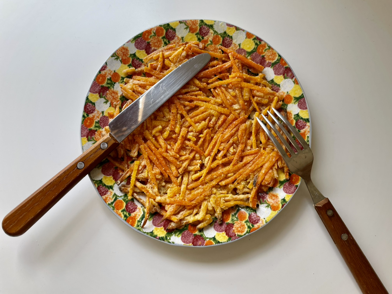 채썬당근과 유기농 당근, 이걸로 만든 각각의 당근 뢰스티는 둘 다 맛있었다.