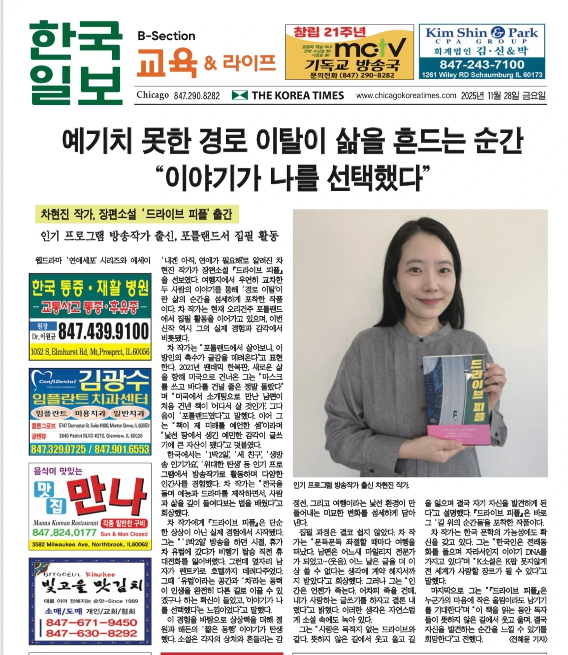책을 내고 한국일보 시카고 한인신문에 기사가 실렸다.