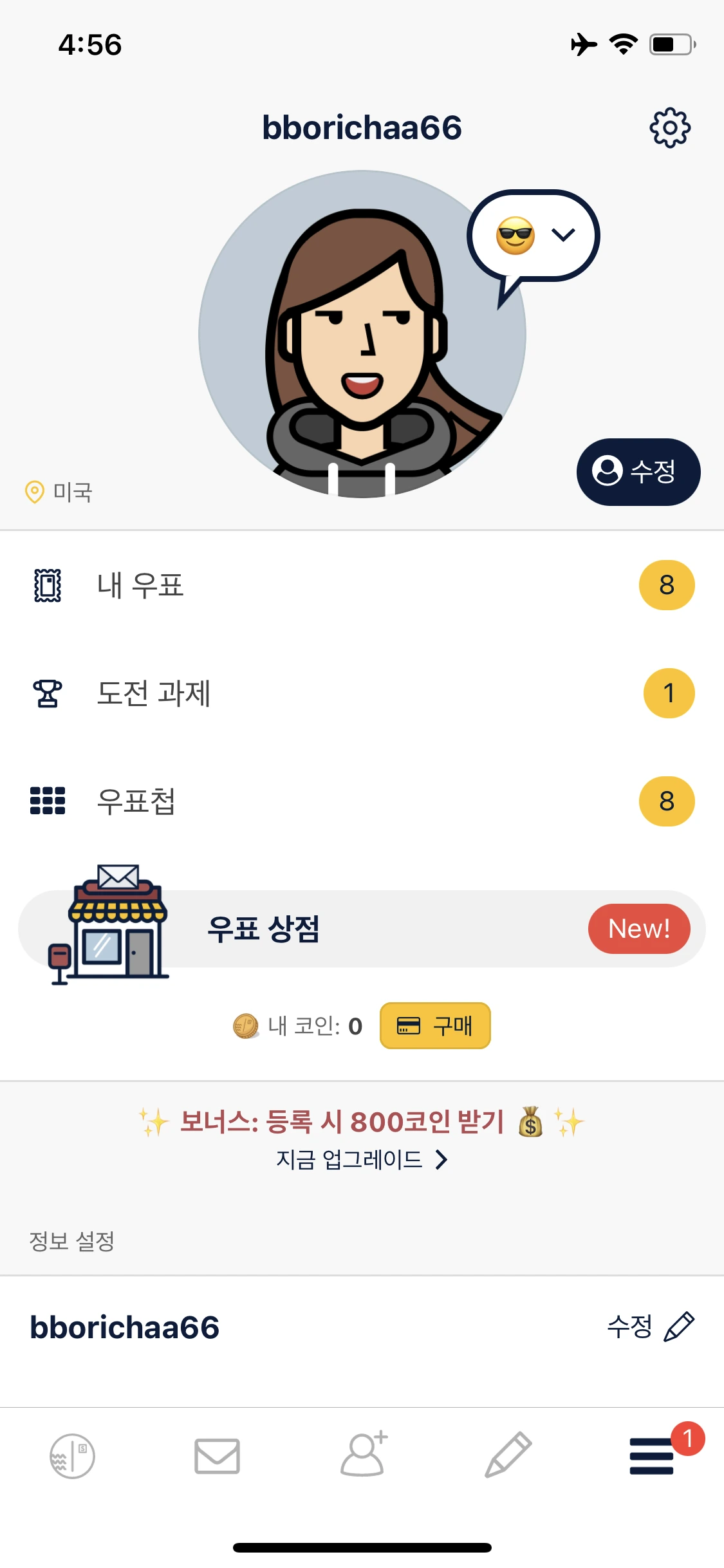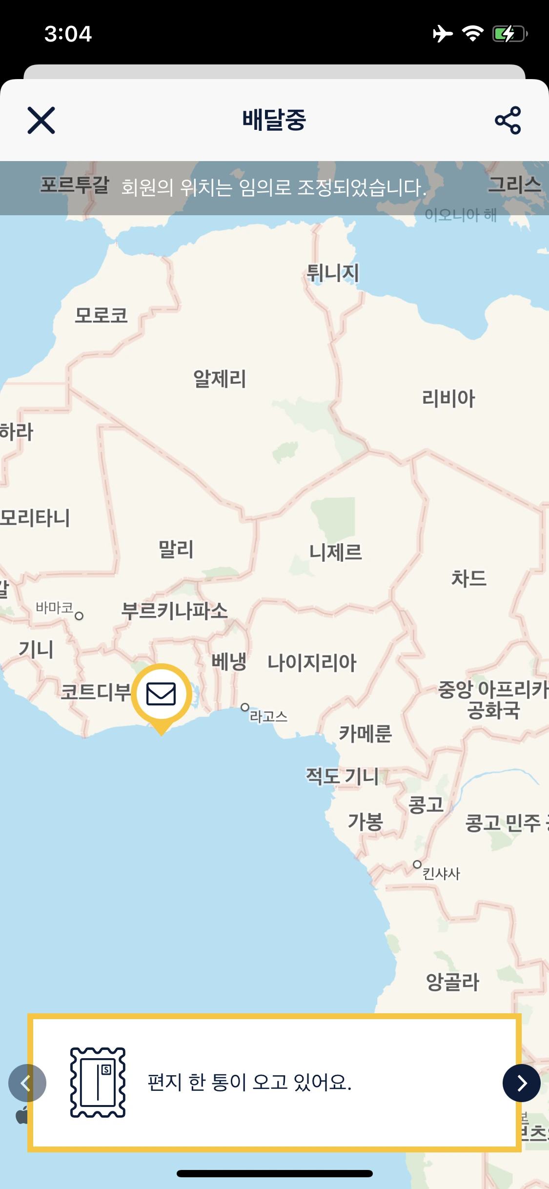 지금 2통의 편지가 내게 배달되고 있다고 떴다.
