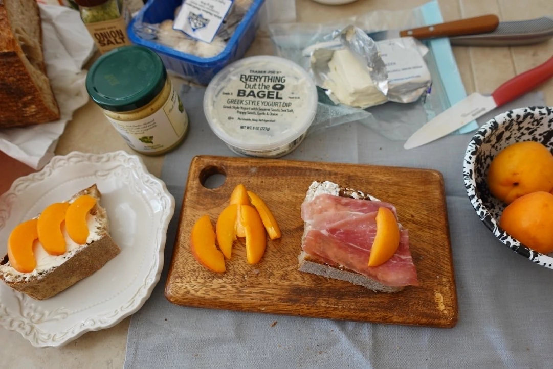 보통은 치즈를 얹고 전날 산 과일을 올려 오픈 샌드위치로 먹는다.