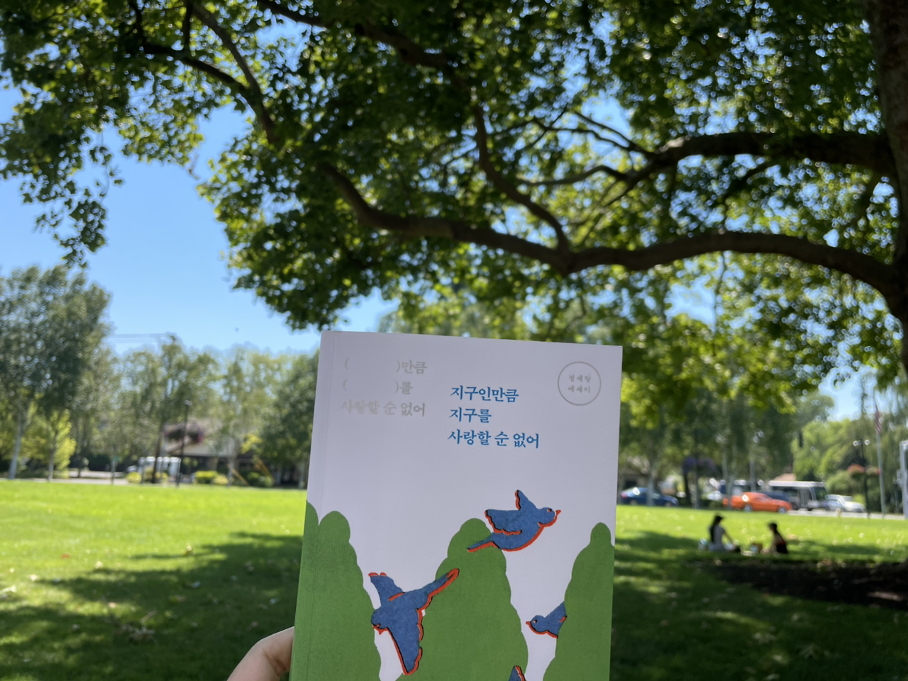 공원에서 책을 읽으면 책이 더 신나 있는 것 같다.