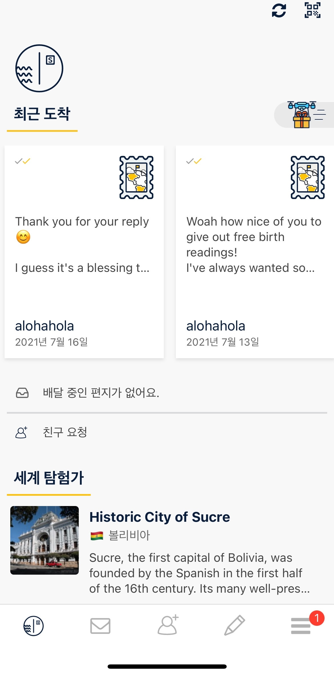 이 어플은 실제로 편지가 도달하는 시간만큼 기다려야 답장을 받을 수 있다.