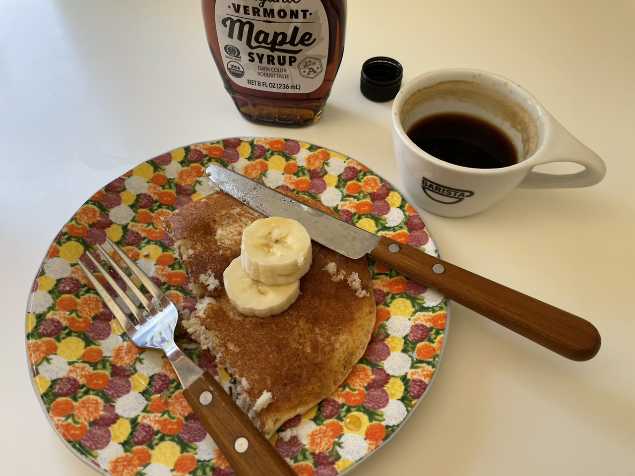 제철과일이 듬뿍 올라간 팬케익입니다.
