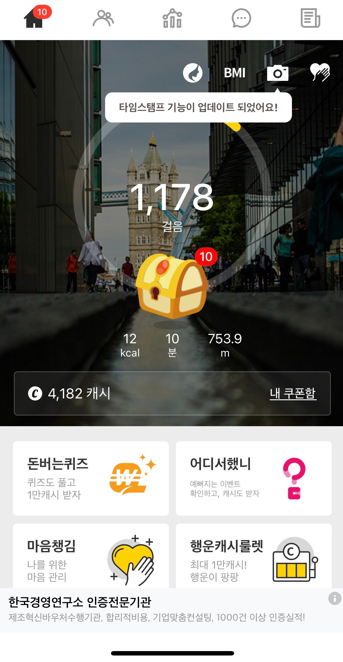 <캐시워크>라는 어플을 켜고 산책을 하면 걸음수가 측정된다.