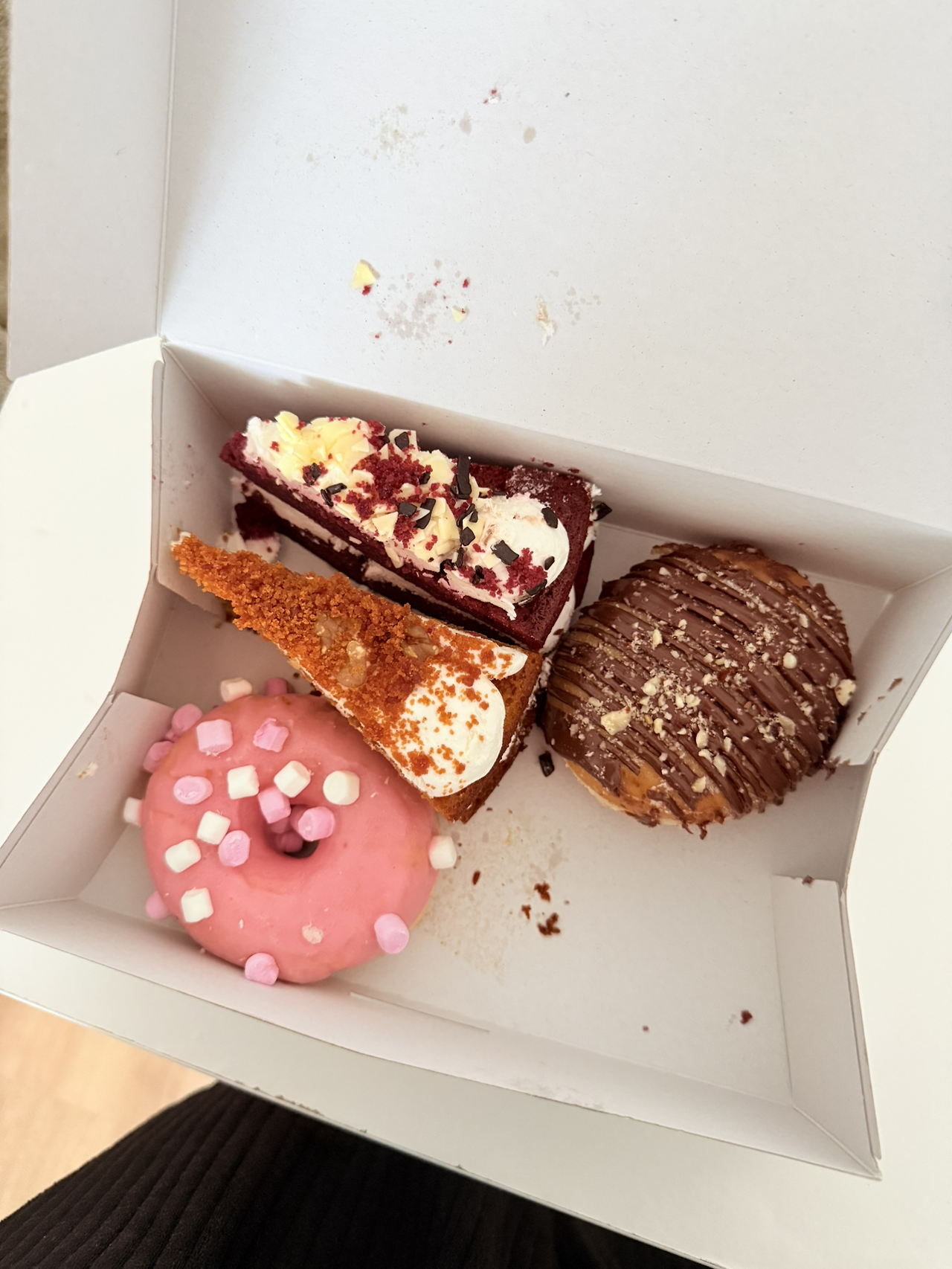 숙소 근처에 예쁜 디저트 가게가 있길래 도넛과 케이크를 샀다. 포장, 맛 엉망이다. 짜다.