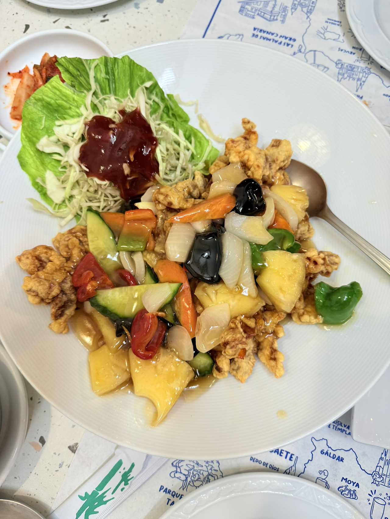 이사를 하는 당일날은 분명 어려울 것 같아 이사를 하기 전 날 큰 마음을 먹고 아이들과 외식을 해보기로 결심을 했다. 내가 있는곳 라스팔마스에는 한식당이 몇 군데 있다. 대부분이 중국인들이 운영하는 한식당이라 한국음식이라고 하기엔 다소 무리가 있고 그냥 따라하는 정도? 하지만 이곳에서 수십년을 사시며 어업을 하셨던 어르신들이 있다. 그 분들은 어업이 끝나고 난 뒤에 한국으로 돌아가지 않고 이곳에 남아 연금을 받으며 생존만을 유지하고 있는 분들이 계신다. 그 분들중 몇분은 한식당을 운영하시기도 한다.
