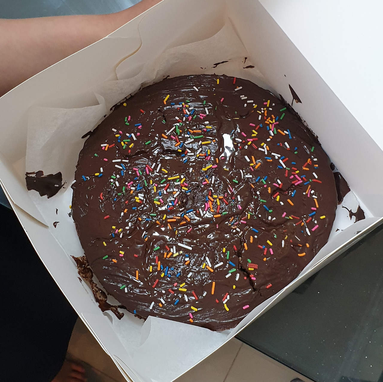 수업이 끝날 시간에 가보니 퍼즐을 맞추고 있던 아이는 선생님이랑 만든 케이크를 예쁘게 포장해서 들고 나왔다. 세상에 이렇게 달콤한 초코 케이크라니!