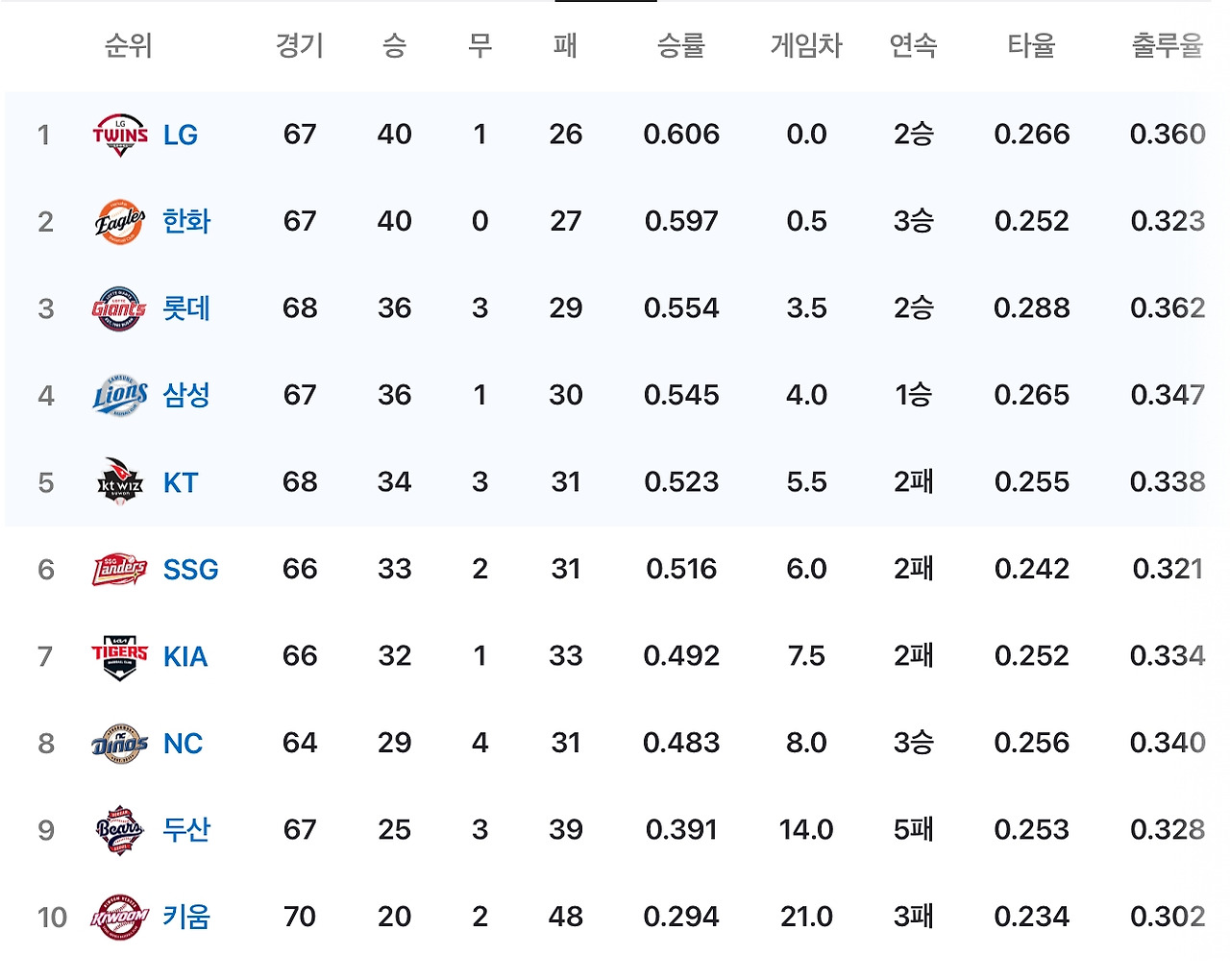 지금 황성빈, 나승엽, 윤동희(주전 선수)가 없는 상태에서도 이 순위를 잘 유지하고 있다.
