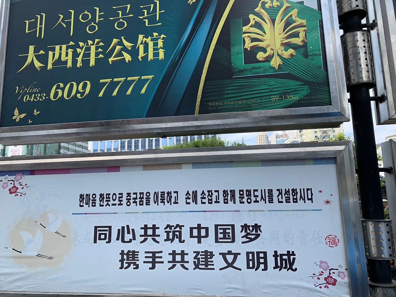 중국은 규정 상 소수민족자치주에서는 반드시 해당 민족의 언어를 병기해야 하기 때문에 연길 시내로 들어오는 순간 교통표지판이며 온갖 간판에 빼곡하게 적힌 한글을 볼 수 있다. 그래서 중국어로 말은 할 수 있지만 모르는 글자가 아직 많은 나는 이곳에서만큼은 '칸부동'(看不懂,보고도 알지 못한다, 즉 글자 뜻을 모른다는 뜻)의 설움을 잠시나마 잊을 수 있었다. 심지어 시내버스 정차 안내 방송도 한국어-중국어 순서로 나온다.