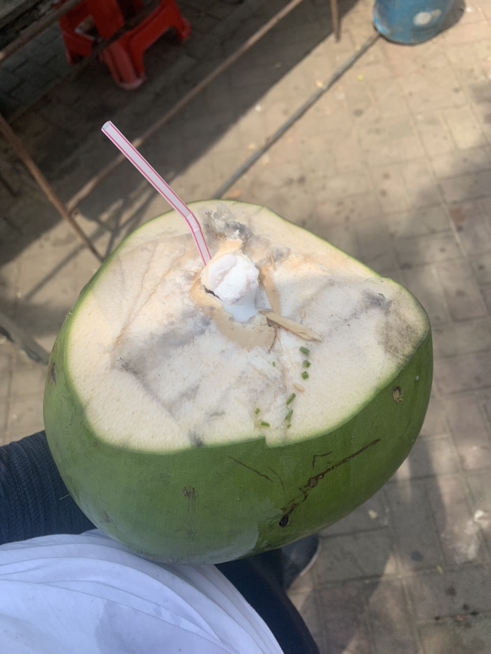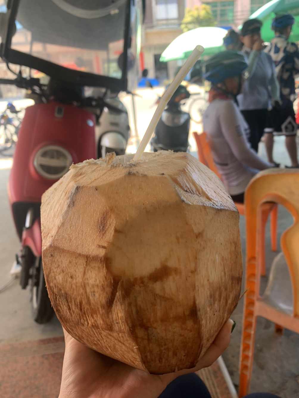 누군가 하이난에서 자전거를 타면서 가장 좋았던 것이 무엇이냐 묻는다면 대답은 단연코 '코코넛'과 '야자나무숲'이다. 하이난은 중국 내 주요 코코넛 생산지답게 곳곳에서 코코넛을 판다. 어마어마한 더위 속에서 달리다가 마시는 코코넛은 그 어떤 음료도 가뿐히 능가한다. 코코넛 즙으로 온몸의 갈증을 달래고, 안 쪽의 젤리 같은 과육까지 긁어먹으면 속도 든든하다. 게다가 가격도 저렴하니 (1개당 6-7위안(1300원) 정도) 안 사 먹을 이유가 없다. 모두들 나와 같은 생각이었는지, 달리다가 코코넛 파는 곳만 보이면 얼마냐고 가격을 물어보며 하루에 한 개씩 열심히 사 먹곤 했다.