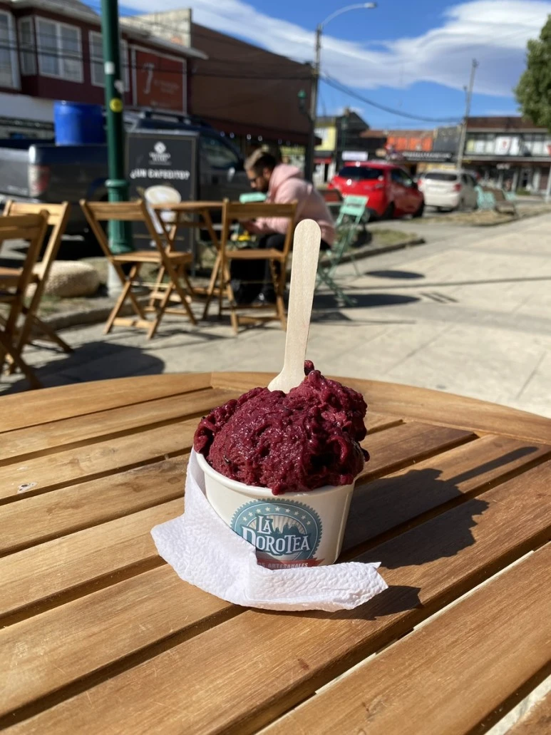 길가에 사람이 많던 아이스크림 가게가 딱 봐도 맛집인 것 같아서 젤라또 하나 사 먹었다. Helados Hechos En Casa라는 곳이었는데, 칼라파테 열매로 만든 아이스크림이 여기서만 먹을 수 있는 맛일 것 같아서 그 메뉴로 1가지 맛 주문했다. 언뜻 보기엔 포도 혹은 블루베리 아이스크림 같았는데 맛은 전혀 달랐다. 쌉싸름한 맛에 씨앗이 씹히고 마지막에 잠깐 단맛이 느껴졌다. 먹으면서 점점 건강해지는 기분이었다. 개인적으로 단맛보다는 신맛을 선호하고 쌉싸름한 맛에 큰 거부감이 없어서 괜찮았는데, 일반 사람들 입맛에는 별로일 수 있겠다 싶었다.