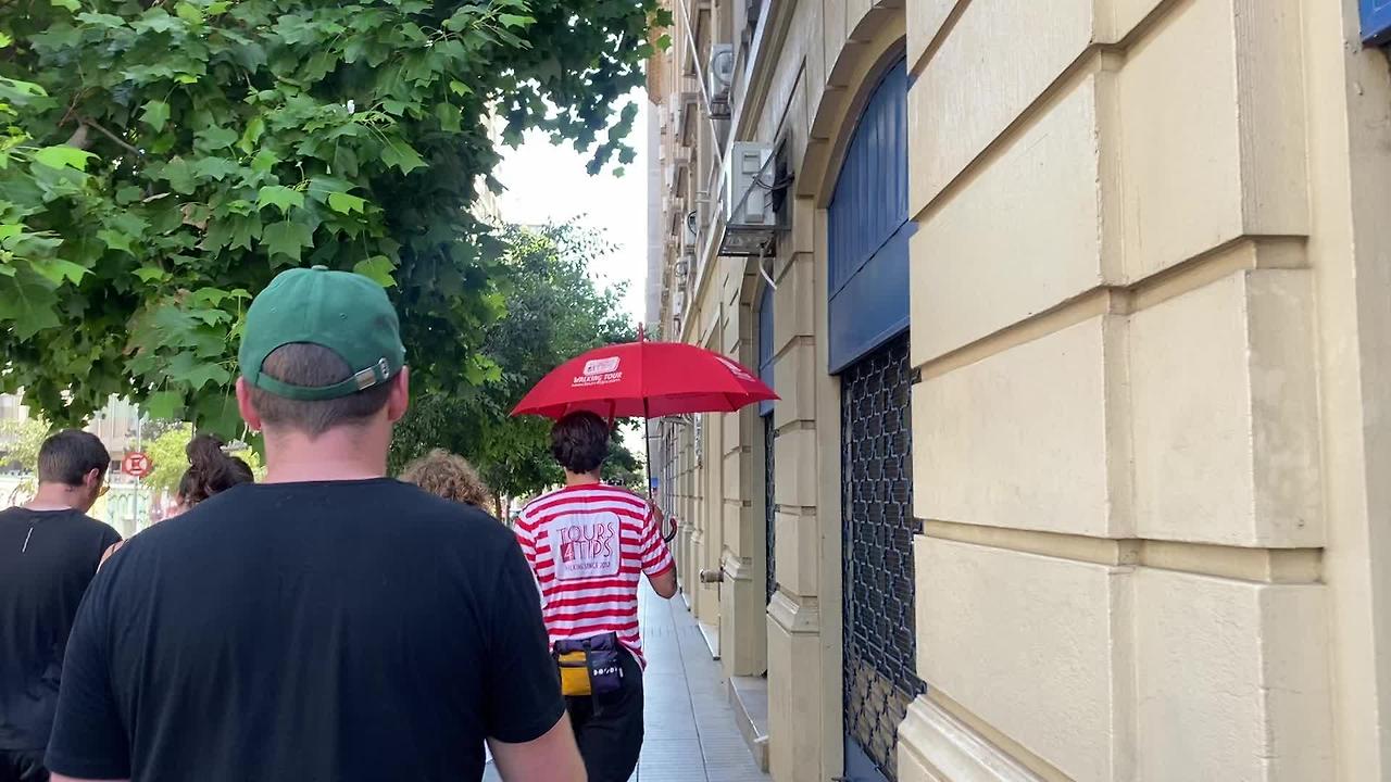오후 3시에 시작되는 워킹 투어에 맞춰서 약속 장소였던 국립박물관 앞으로 갔다. 날이 아주 쨍하고 더웠는데 멀리서부터 누가봐도 투어사 라고 생각되는 빨간 줄무늬의 티셔츠와 빨간색 우산을 든 키 큰 남자분이 우뚝 서 계셨다. 순간 만화 속 등장하는 캐릭터라고 봐도 될 정도로 아주 눈에 띄는 인상이었다. 5분 정도 사람들을 조금 더 기다렸다가 투어는 시작되었고, 도보로 이동할 수 있는 거리에 있는 도시의 역사가 담긴 위치와 지형지물들을 상세히 설명해주셨다.