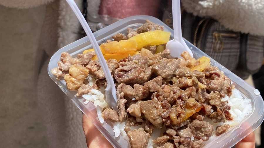 살만한 것은 딱히 없다는 판단이 들었고, 약간은 출출한 감이 있어서 요깃거리를 사 먹어볼까 싶던 차에 라마 고기 덮밥을 발견했다. 투어를 함께하는 동행친구 중 한 명과 같이 사서 나눠먹기로 했고, 하나에 10 볼(약 2천 원)로 가격은 한국 기준 저렴한 편이었다. 양고기처럼 특유의 향이 있었고 제법 간이 있는 편이었는데 쌀밥이 있어서 밸런스는 얼추 맞았고 한 번쯤 먹어볼 만한 맛이었다. 언제 또 이렇게 캐주얼한 라마고기 덮밥을 먹어볼 수 있겠나 싶었고, 쨍해진 날씨 아래 라마고기를 먹고 있자니 현지인 빙의한 것 같다는 느낌마저 들었다.