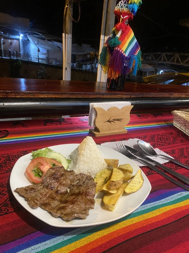 오후 두시가 조금 넘은 시각 버스로 이동하는 일정은 모두 종료가 되었고, 그곳에 위치한 유일한 식당에서 점심 식사를 했다. 메뉴는 이미 정해져 있었고 닭 육수 맛이 나는 맑은 스프와 어설픈 돈까스가 생각나는 돼지고기 튀김, 감자튀김 조금과 샐러드 조금이었다. 첫 끼니였기 때문에 맛있게 잘 먹었고 약간의 휴식 후 본격적으로 이동 준비를 했다. 그리고 그곳에서 우연히 만난 한국인 여행객 두 분은, 앞으로 쉽지 않은 여정이 기다리고 있을테니 각오를 해야할 것이라고 언지를 주었다. (날이 매우 좋지 않아서 마추픽추에서도 구름 낀 산만 보다가 내려왔으며, 돌아오는 길도 빗길에 너무 험난해서 여러모로 너무 힘들었고 허망하다는 말을 전했었다)