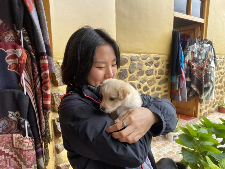 약속된 버스 탑승 장소에 도착하고 보니 봉고차 한 대로 이동하는 거였고, 생각보다 작은 차로 이동하는 거라 멀미로 인한 걱정이 앞을 가렸었다. 하지만 역시 몸이 너무 피곤해서인지 처음 출발했을 땐 바로 기절했기 때문에 다행히 시작부터는 무리가 없었다. 오전 8시쯤 첫번째 휴식 지점에 도착했고, 그곳에서는 간단한 간식거리 구매와 화장실을 해결할 수 있었다. 아직은 배가 고프지 않아서 화장실만 다녀왔고 그곳엔 태어난지 몇 개월 되지 않은 강아지가 있어서 쉬는 동안 아기 강아지와 힐링하는 행복한 시간을 보냈다.