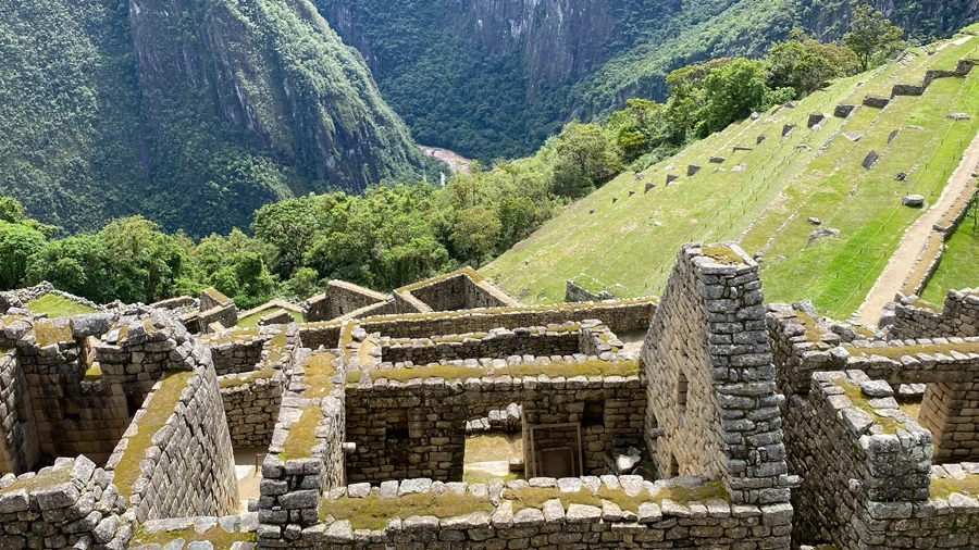 마추픽추가 가장 잘 보이는 스팟에서 함께한 동행분들과 단체 사진도 찍고, 개인 사진도 질리도록 찍었다. 멍하니 그 뷰를 한 없이 바라보기도 했다. 그러다 한 칸 한 칸 씩 내려가면서 그곳의 지형지물에 얽힌 이야기도 들려주셨다. 어떤 돌에는 고대 문자 같은 것들이 쓰여진 흔적도 있었고 과거엔 돌로 쌓아올린 구조물 위해 지붕처럼 볏짚 같은 게 덮여 있다고도 했다.