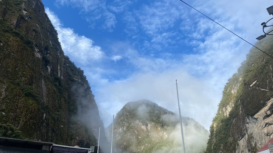 각설하고 8시가 조금 넘은 시각 가이드와 함께 투어가 시작되었다. 큰 가방은 무조건 짐 보관에 맡겨야 해서 몇몇은 맡긴 후 입장할 수 있었고, 어제의 기나긴 빗길 철길 트래킹을 함께했던 이들도 다 이곳에서 만나게 되었는데, 하루만에 봤다고 새삼 반가웠다. 분명 어제까지는 그렇게 비도 퍼붓고 날이 안 좋더니, 오늘은 거짓말처럼 아주 맑게 갠 화창한 날씨였다. 구름 조차도 동화 속 구름처럼 예쁜 모양으로 산을 덮었다가 옮겨졌다가 했다.