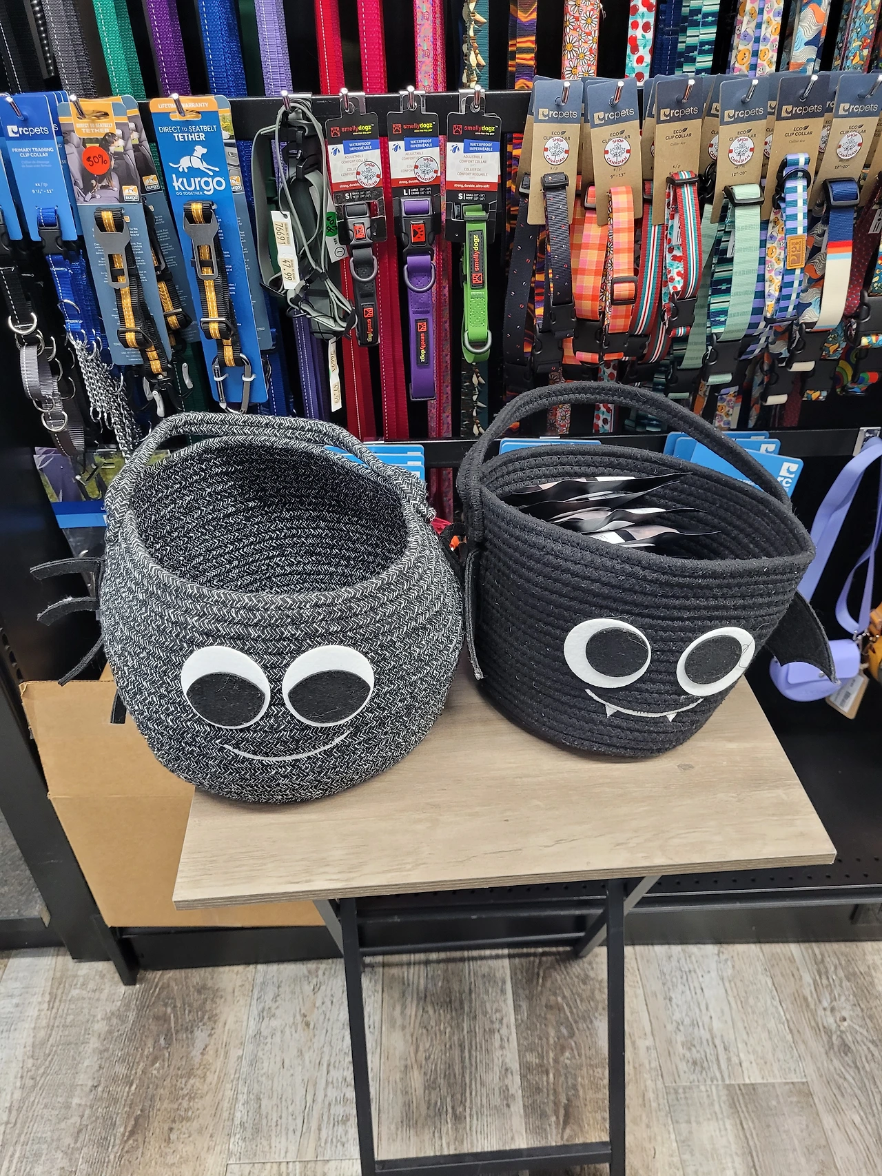 핼러윈이어서 트릭올트릿 (Trick or Treat)을 할 때 각 스테이션마다 종류 다양한 반려동물들의 간식들로 가득 차 있었다.