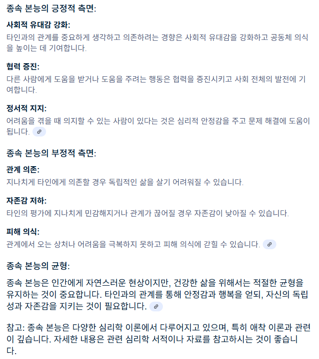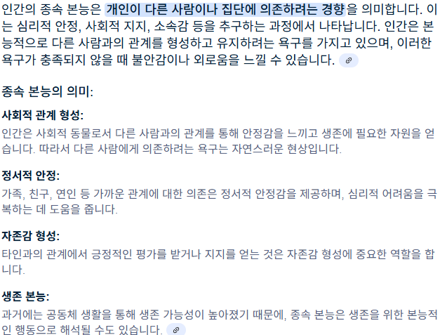 아래는 종속본능에 대한 AI 답변이다.