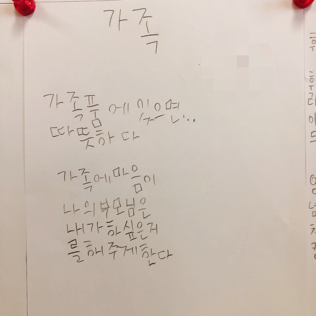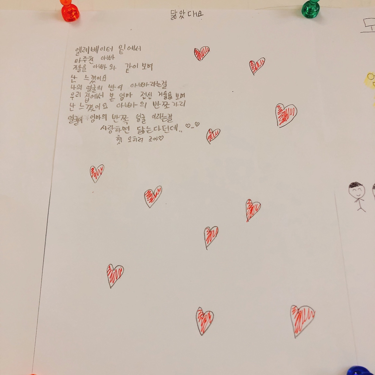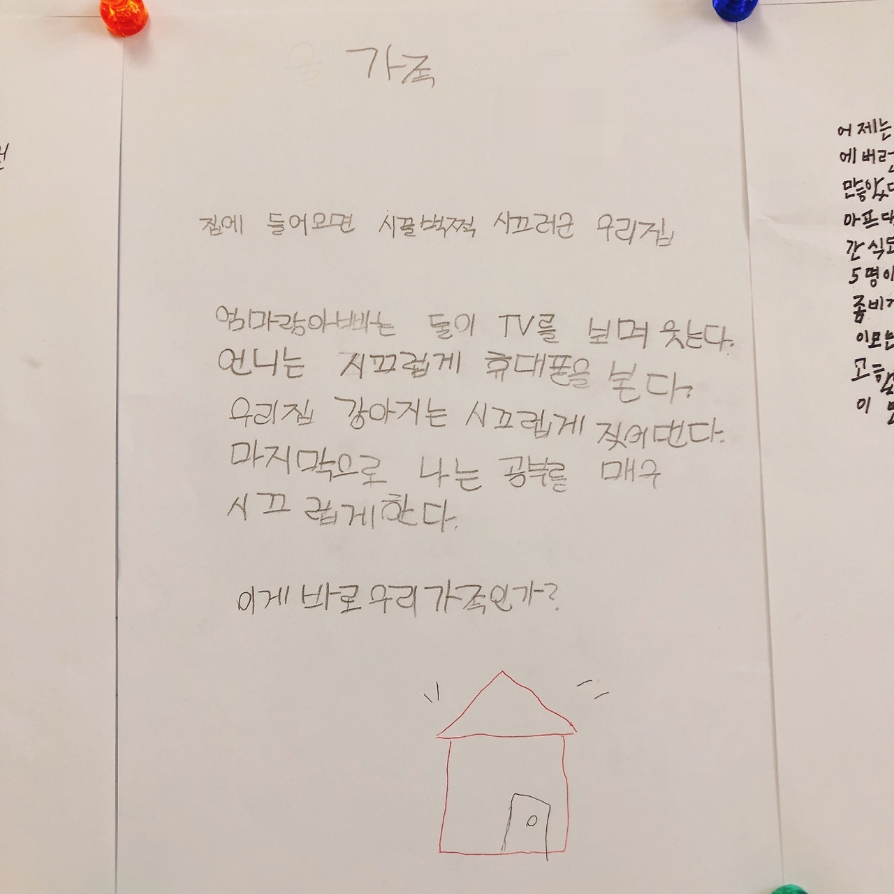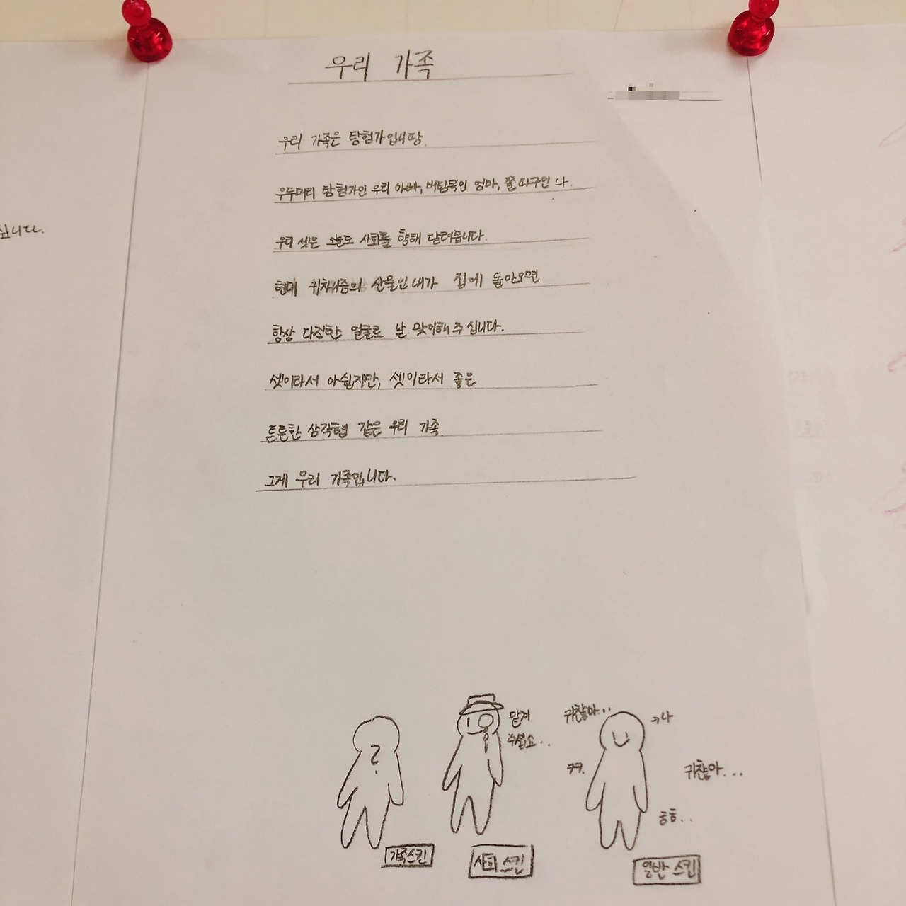 모두 가족을 떠올리며 시를 썼다. 기쁠 때도 슬플 때도 외로울 때도 옆에 있는 가족이다. 항상 나의 편이다. 영원한 나의 편, 가족이다.