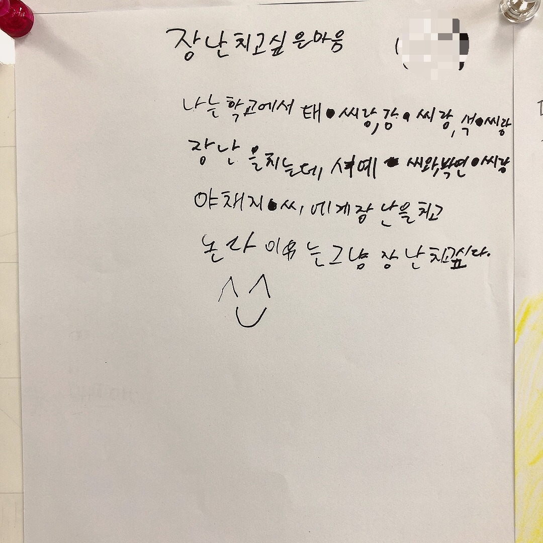 내 눈에 아이들의 마음은 참 깨끗하다. 저 깊은 산골짜기 계곡에 흐르는 물 같다. 때 묻지 않은 맑은 물이다. 투명한 물처럼 속이 다 비친다. 그래도 아이들은 나름 복잡하겠지? 자기 마음이 제일 어렵겠지? 가끔은 따뜻했던 물이 미지근해지기도 차가워지기도 하고 꽝꽝 얼어버릴 때도 있겠지. 투명한 유리구슬 같던 마음이 뿌옇게 보이지 않는 날도 있을 것이다. 그럴 땐 어떤 마음인지 들어봐야겠다. 선생님한테 와서 말해주겠니? 항상 너를 지켜보고 있는 내가 너의 마음을 잘 알 수도 있으니.