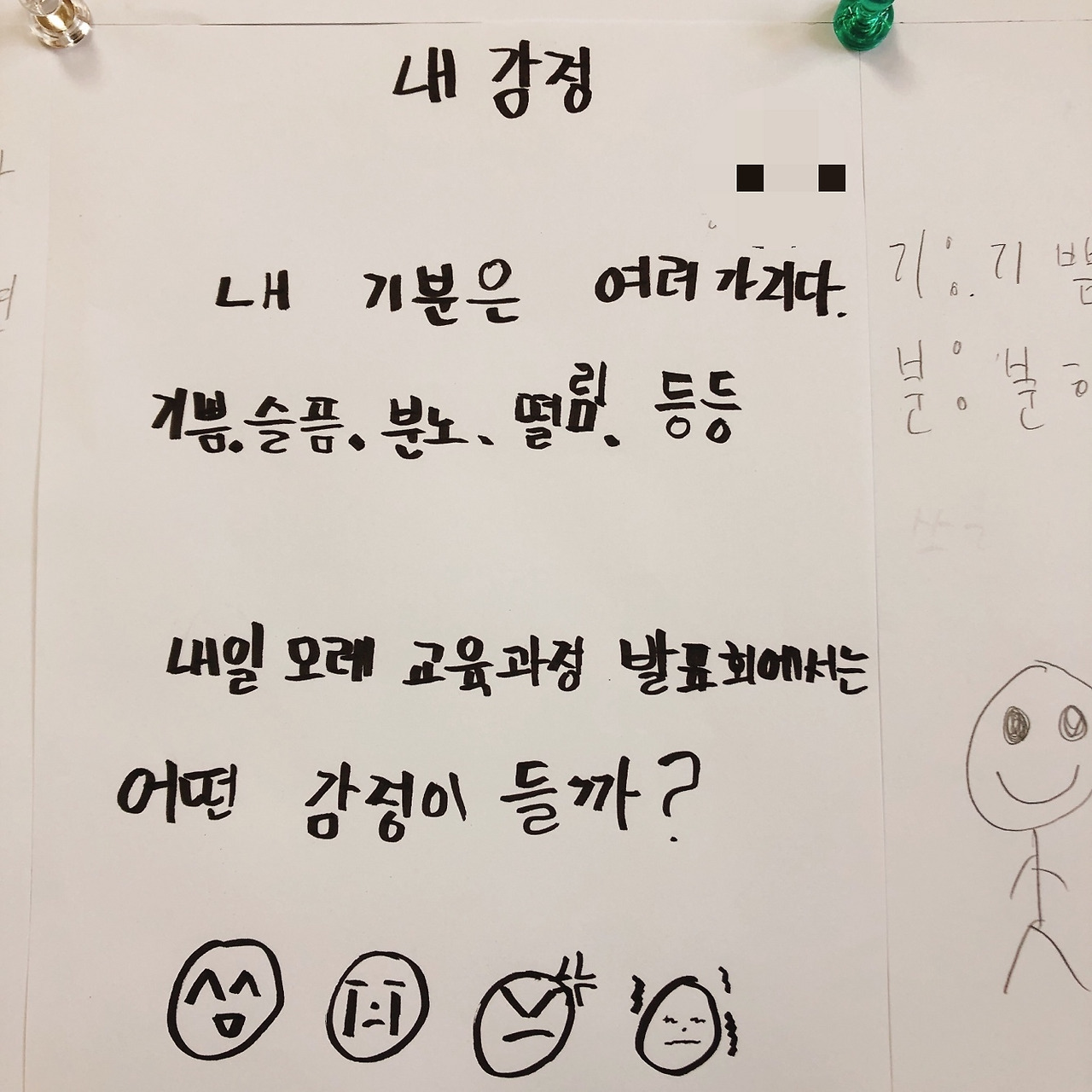 “목요일에 있을 교육과정 발표회에서는 어떤 감정이 들까?”
