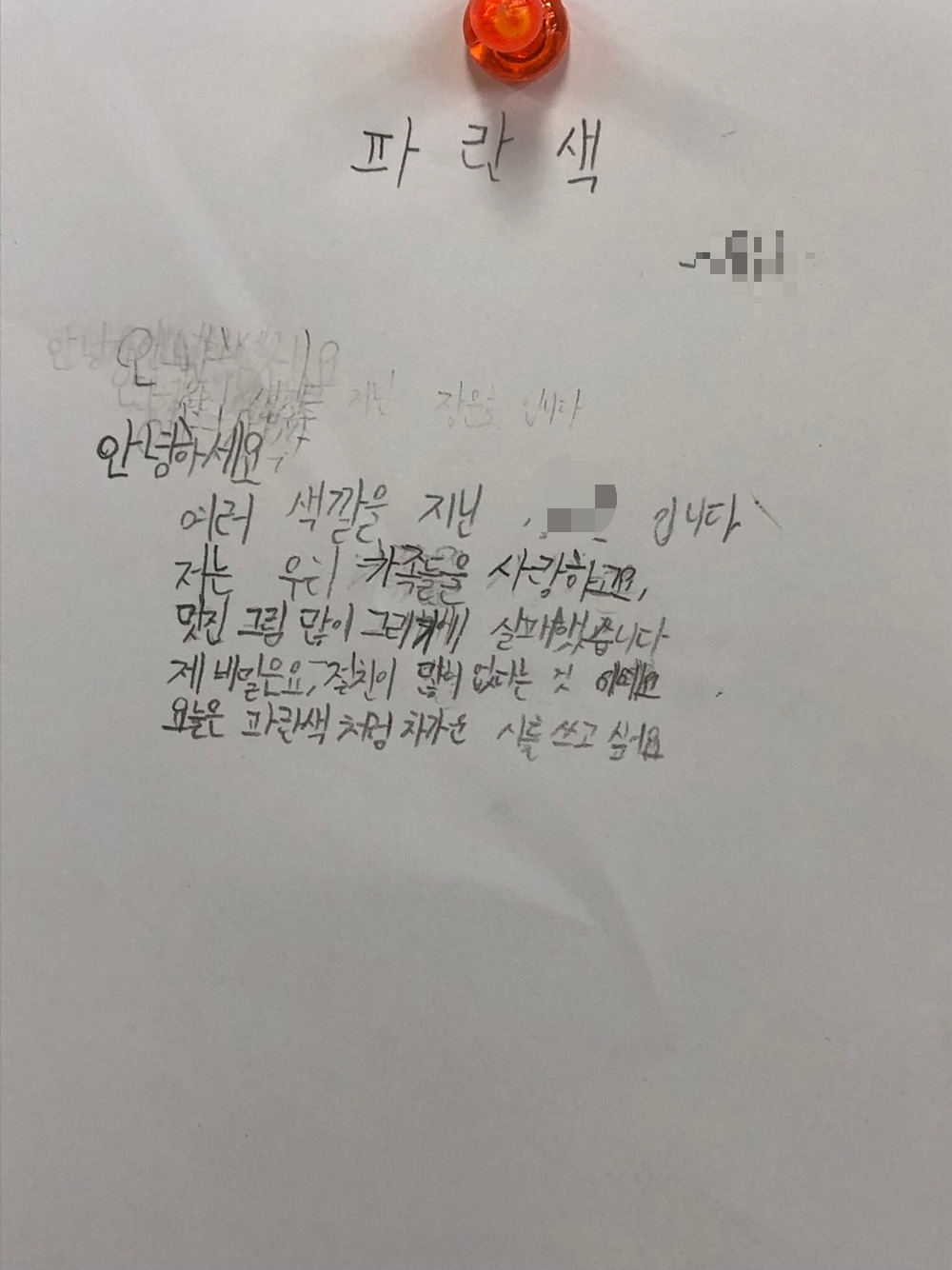 아이들의 모든 자국들은 작품이 되며 이런 성장 과정 속 기상천외한 에피소드들을 함께 공감해 주시고 응원해 주시면 큰 힘이 될 듯합니다.