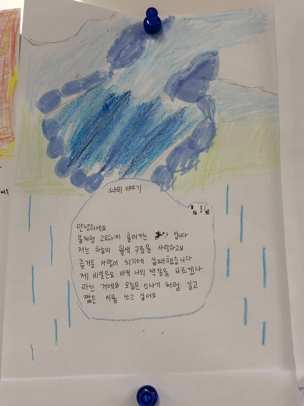 앞으로의 ‘나만의 시 짓기’ 프로젝트가 어떨 것 같냐는 물음에 “어려울 것 같아요.”라고 답하는 아이도 있었지만 “재밌을 것 같아요.”, “기대돼요.”라고 답하는 아이가 많아 함께 열심히 해보기로 다짐하며 오늘의 시 활동을 끝냈다.