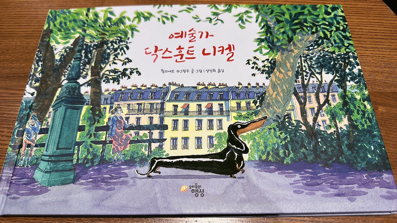 표지부터 한 편의 작품 같았다. 책 제목의 예술가는 표지의 강아지일까? 그럼 이건 예술가 닥스훈트 니켈이 자신을 그린 그림일까? 이 그림책은 글과 그림 작가가 같았는데 예술가 니켈의 세상이 드러나는 그림이 인상적이었다. 그래 예술가의 삶은 이렇지 하며 읽어 내려갔다. “여러분, 안녕하세요? 나는 닥스훈트, 니켈이에요.”라는 산뜻한 인사로 등장한 책의 주인공은 “미리 말하지만, 내 몸은 그다지 멋지지 않아요. 그러니까 이 책장을 넘기면서 웃지 마세요.”라는 자조적인 말을 건넨다. 도대체 무슨 일이지? 걱정하며 책을 읽기 시작했다. 배가 바닥에 닿을 것만 같은 짧은 다리에 기다란 몸, 소시지처럼 생긴 작은 개, 닥스훈트 니켈을 이렇게 소개한다. 늠름한 대형 사냥개인 형들은 대회에서 우승을 거머쥐는 훌륭한 운동선수이지만, 니켈은 운동을 좋아하지도, 잘하지도 않아 형들과 어울리지 못하고 놀림거리가 될 뿐이다.