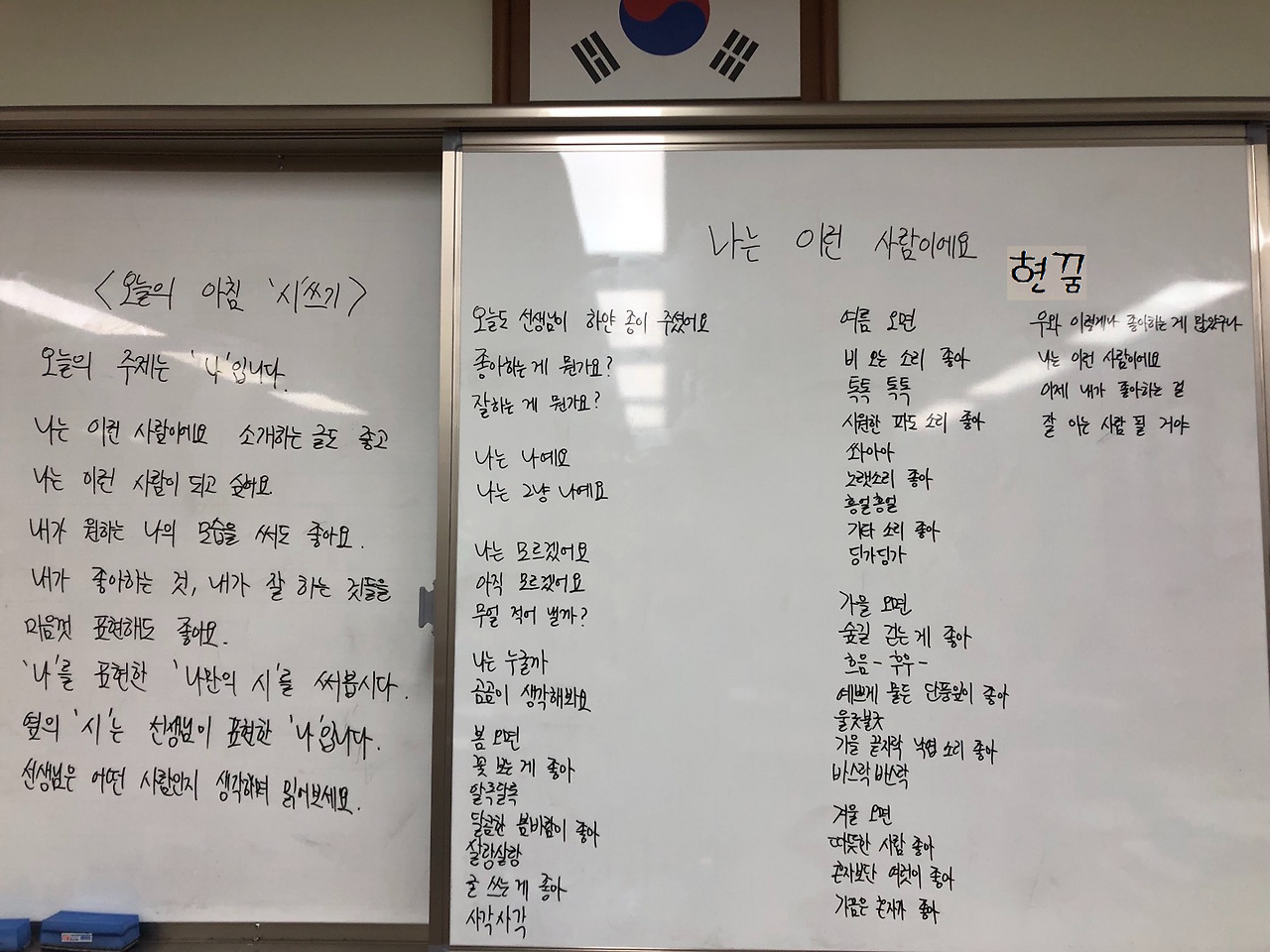 아이들과의 ‘나만의 시 짓기’ 프로젝트로 나도 열심히 시를 쓰게 되었다. 내가 생각하지 못했던 것도 아이들로부터 알게 되고 깨닫게 되는 것이 많은 요즘이다.