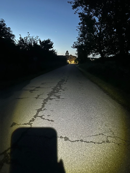 길 양쪽으로 우거진 수풀 사이로 작은 동물들이 움직이는 건지 '스스스~ 스스슷' 같은 소리가 들려 깜짝 놀라기도 하고 쫄보가 되어서 걷고 있는데 전날 밤에 찾았던 사건 하나가 떠올랐다. 인적이 드문 곳에서 순례자인척 하면서 접근했다가 강도로 돌변해서 소지품을 빼앗고 경찰 신고가 지체되도록 손발이 묶어 놓은 채로 도망갔다는 것이었다. 온갖 상상을 하며 걸어가고 있는데 작은 불빛이 보였다. 멀찌감치에 우두커니 서서 뒤를 돌아보고 있는 사람이 있었다. 움직임이 없길래 내가 잘 못 본 건가 하며 다시 보아도 사람이었다. 칠흑 같은 어둠 속에서의 낯선 사람은 반갑기보다는 무섭다. 설마 저 사람도 강도는 아닐까, 남자인가 여자인가, 강도라면 어떻게 도망가는 게 좋을지 머릿속은 바쁘게 움직였다. 결국 미동도 없는 우두커니 서있는 '무서운 사람'의 정체를 확인했다. 백인 남자였다. 나는 아무렇지 않은 척,