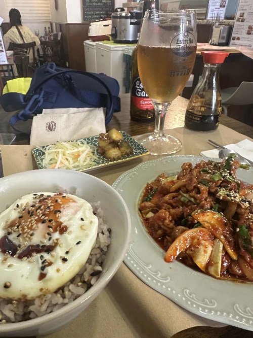 한국인들을 보고 싶으면 이 식당(두 번째 소풍)으로 가면 된다. 내 맘대로 '언니'라고 부르던 분도 숙소에서 만나서 이 식당에서 오픈런해서 같이 저녁도 먹었다. 오랜만에 외국에서 먹는 한식이어서가 아니라 정말 맛있긴 했고 또 언제 한식을 먹을지 몰라 먹을 수 있을 때 먹어야지 하는 마음으로 부족하지 않게 시켜 먹었다. 하루 종일 걷는다는 이유로 많이 먹을 수 있는 것은 순례길에서 누리는 작은 기쁨 중 하나다.