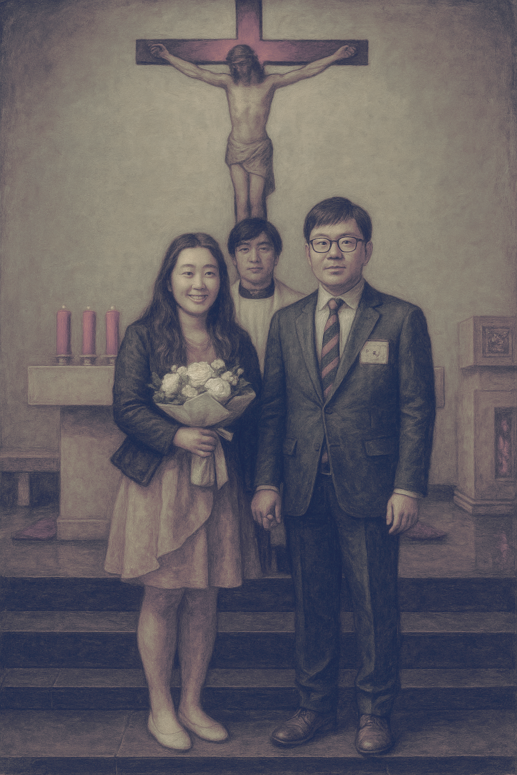 몇 주 뒤, 혼인성사는 예비 시부모님이 다니시는 성당에서 치러졌다. 천주교인 증인이 두 명 필요하다고 했는데 마침 우리 둘 모두와 같은 대학, 같은 동아리에서 제법 친하게 지냈던 커플이 천주교인 부부여서 고맙게도 시간을 내주었다. 아직 진짜 결혼식은 하기 전이어서 결혼식을 하기 위한 준비과정이라고만 생각했는데, 작지만 아름다운 성당에 들어서자 가슴이 두근거렸다.