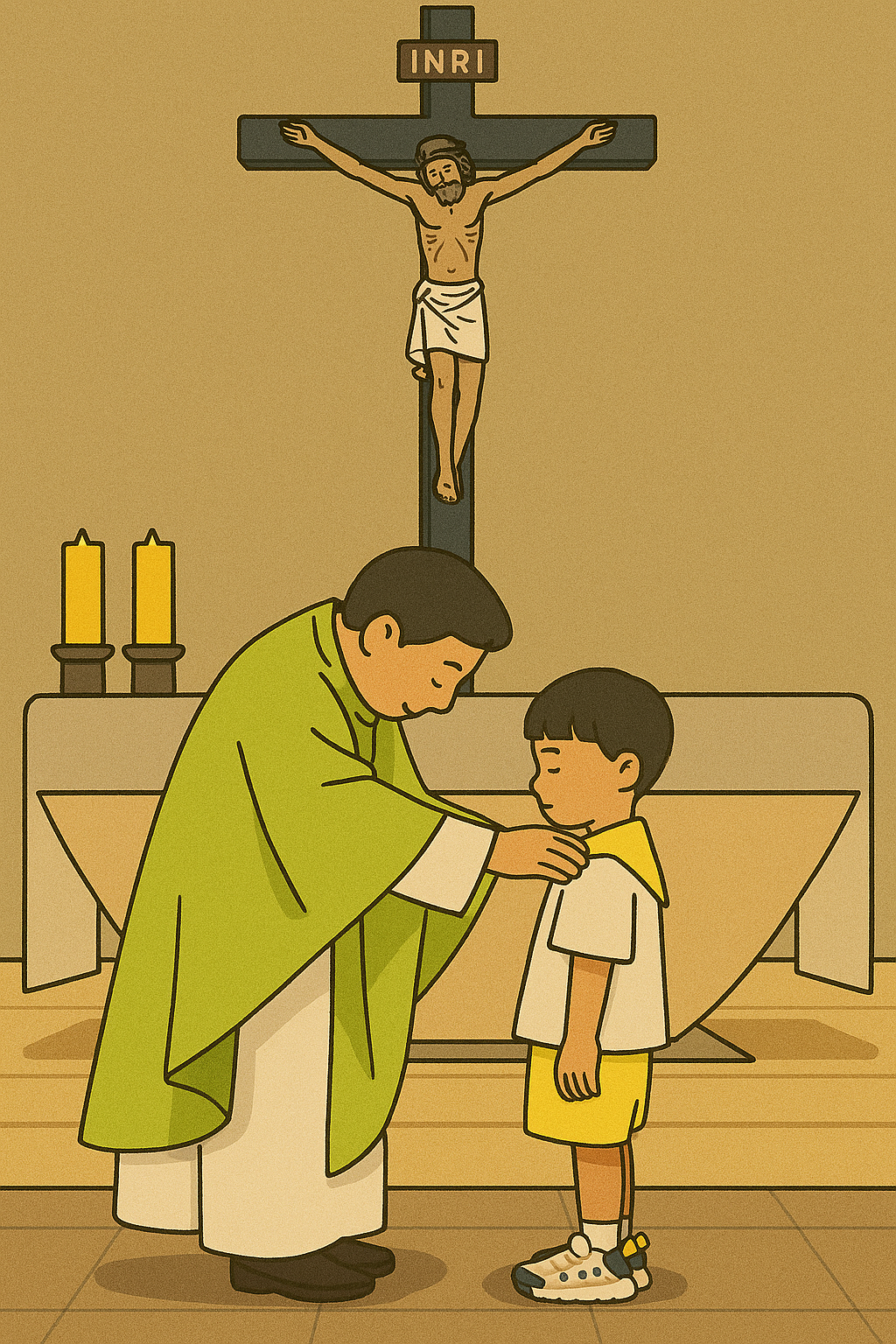 조금은 기어들어가는 목소리로 아이가 뭐라고 대답을 하자, 신부님께서는 "정답!"이라고 외치셨다. 그러고는 아이에게 혹시 옆에서 아빠가 알려주신 것은 아니냐고 물어보셨다. 성당 안은 시끌벅적했지만, 어색하게 뒤를 돌아보는 남편과 눈이 마주친 내 마음은 갑자기 무척 복잡해져서 마치 MUTE 버튼을 누른 것처럼 고요하게 느껴졌다. 분위기상 아빠가 알려준 게 맞는 것 같은데... 과연 우리 아이가 양심을 지켜낼 것인지 아닌지 긴장이 되었기 때문이었다. 아이는 아까보다 더 기어들어가는 목소리로 양심 고백을 했고, 신부님은 다른 아이에게 기회를 주셨다. 아... 집에서는 개구쟁이지만 밖에서는 모범생으로 잘 보이고 싶은 마음이 가득한 아이인데, 기특하기도 하고 걱정되는 마음에 남은 미사가 어떻게 흘러갔는지 잘 기억이 나지 않는다. 뒤통수만 봐도 상심한 아이의 표정이 보이는 것 같았다.
