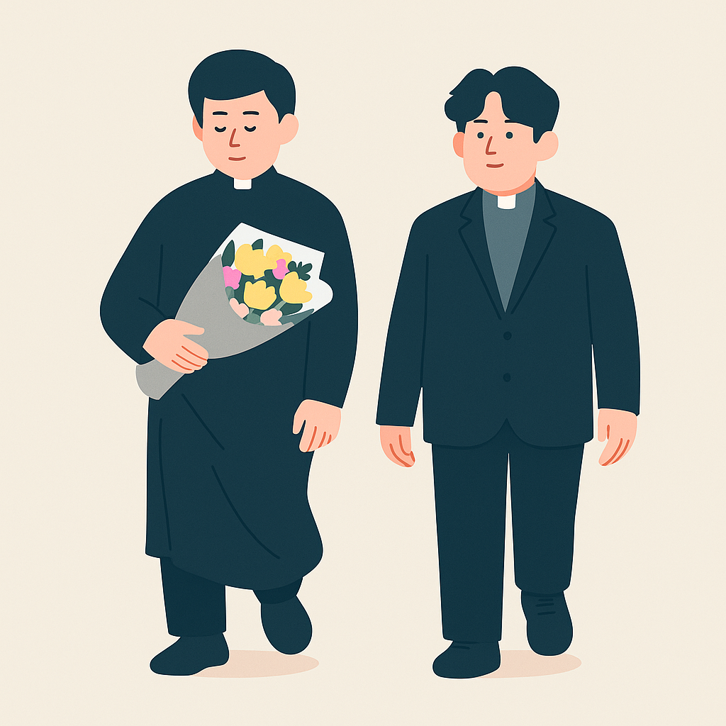 8월 말에 예전 주임 신부님의 이임미사를 준비하면서부터 이미 신자들은 '새로 오실 신부님이 누구실까'에 많은 관심을 가졌다. 발령을 담당하는 서울대교구 부서에서 관계자를 통해 며칠 먼저 알아낼 수 있는 모양인지, 성당을 오래 다닌 어르신들 사이에서 정보가 새어 나왔다. 나도 딸 친구 엄마를 통해 어깨너머로 그분의 사진을 구경했다.