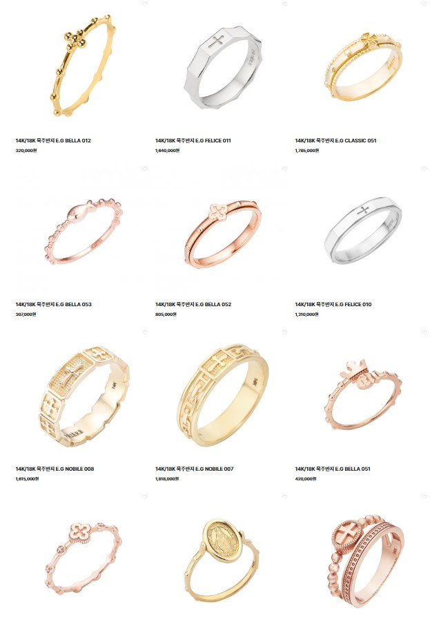 내가 예비신자과정을 시작했다는 말에 가장 기뻐하신 건 시부모님이셨다. 시작하고 얼마 지나지 않아 마침 생일을 맞은 며느리에게 금 한 돈 값을 송금해 주시며, 금값이 더 오르기 전에 '18k 묵주반지를 사라'라고 하셨다. 회전반지는 고장이 금방 나니 피하도록 하고, 예쁜 묵주 반지는 명동성당 성물방에 많다더라는 고급 정보까지 주시며 말이다. 속으로 '묵주 반지가 예뻐 봤자지, 뭐.' 하며 인터넷에 묵주반지를 검색해 본 나는 그 다양함과 화려함에 깜짝 놀랐다.