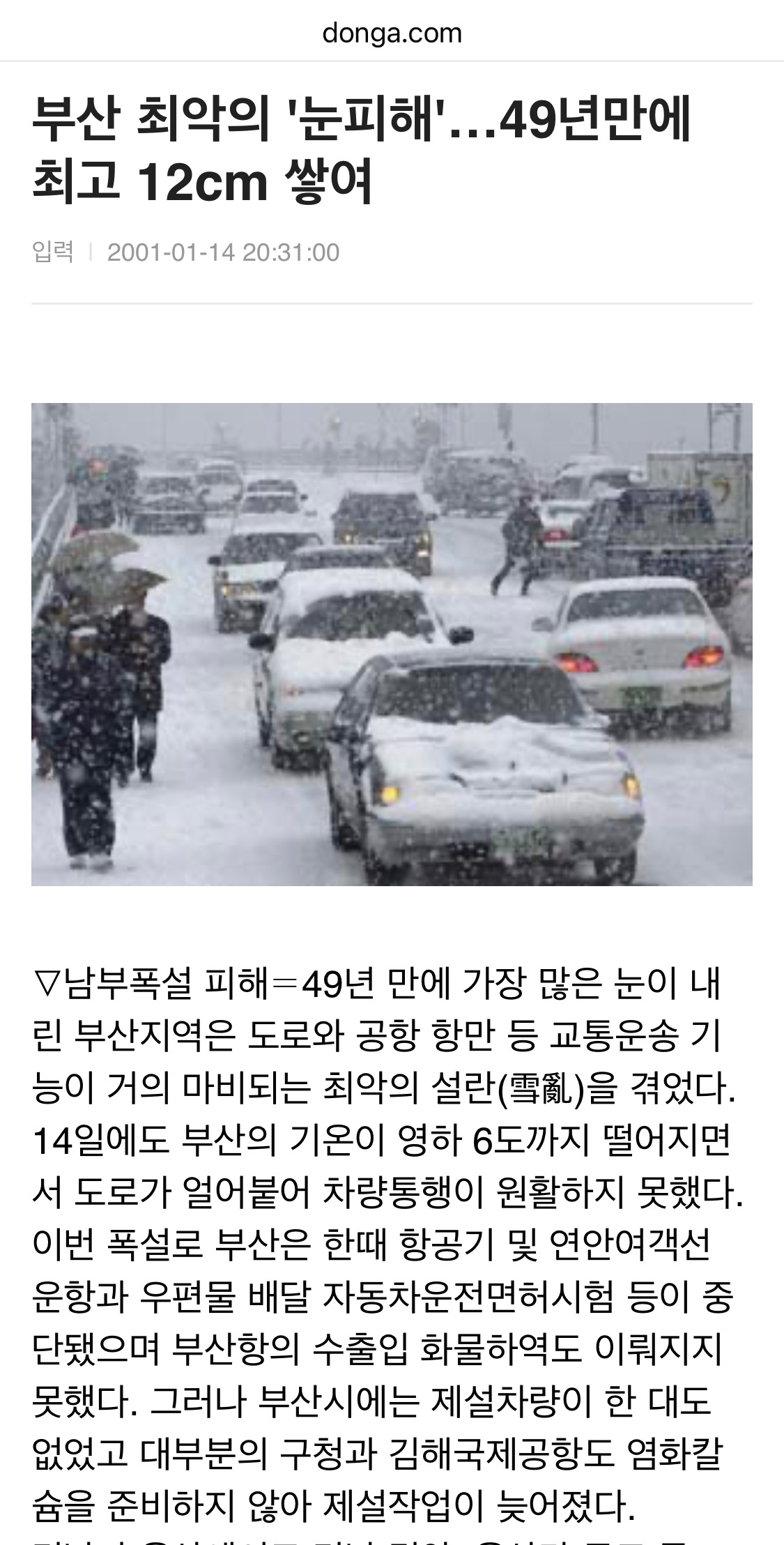 여고생이 바라본 눈 오는 부산의 풍경은 무척이나 아름답게 보였지만, 당시의 일이 뉴스로는 어떻게 보도되었을까 문득 궁금해서 찾아보았다.