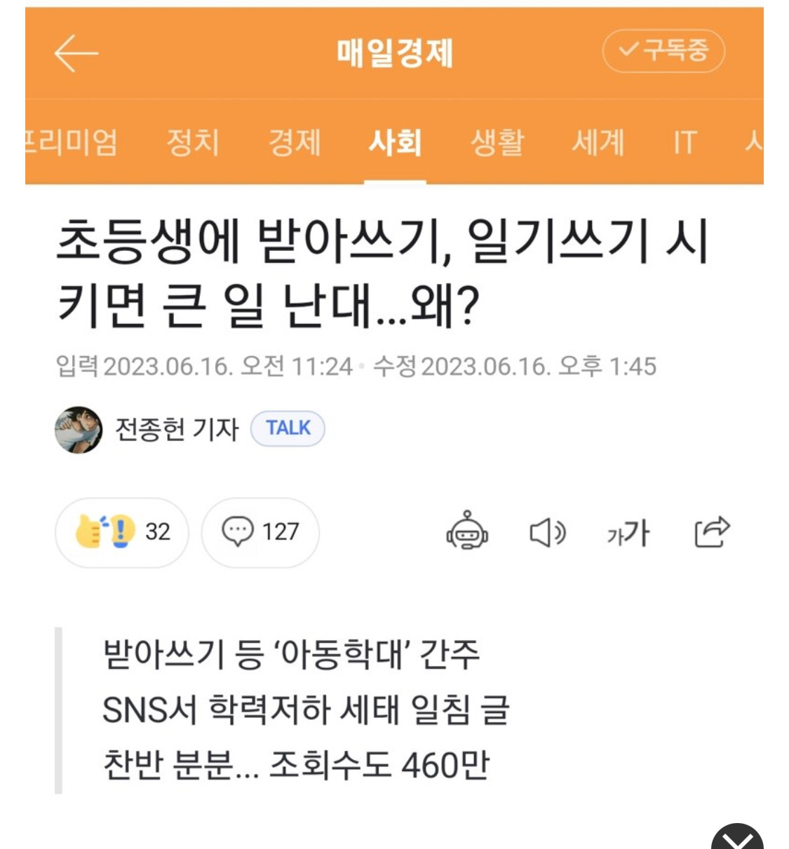 '받아쓰기가 아동학대냐'는 문제에 대해서는 여기서 논하지 않기로 한다.