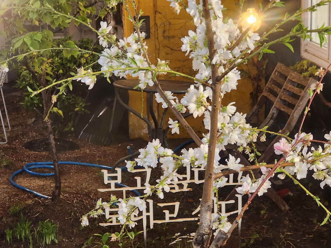 사장님도 벚꽃나무인 줄 알았는데 아무리 자세히 봐도 아닌 것 같다는 것이다. 그래서 인터넷 검색을 계속해봤는데 도저히 이름을 모르겠다는 것이다. 이름이 무엇인지 모르지만 봄날에 참 잘 어울리는 꽃이다.