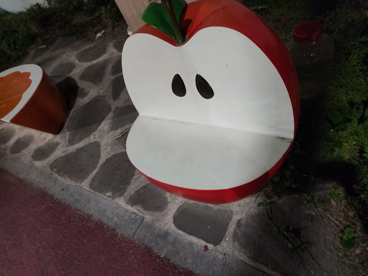 조금 걸으니 사과 모양의 의자가 있어서 잠시 앉아서 쉬었다.