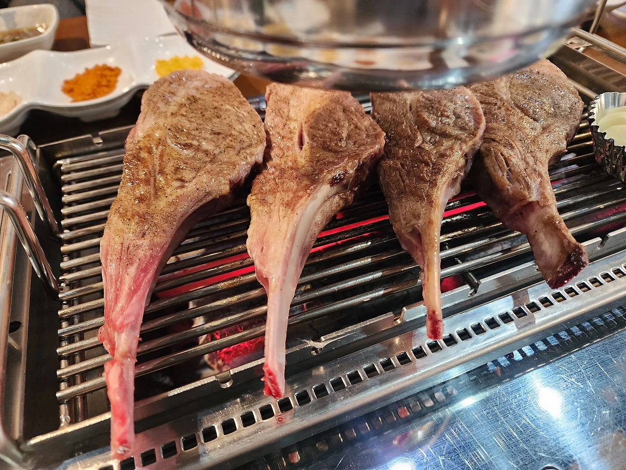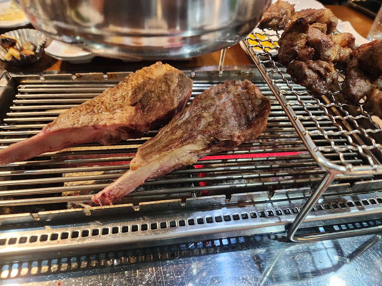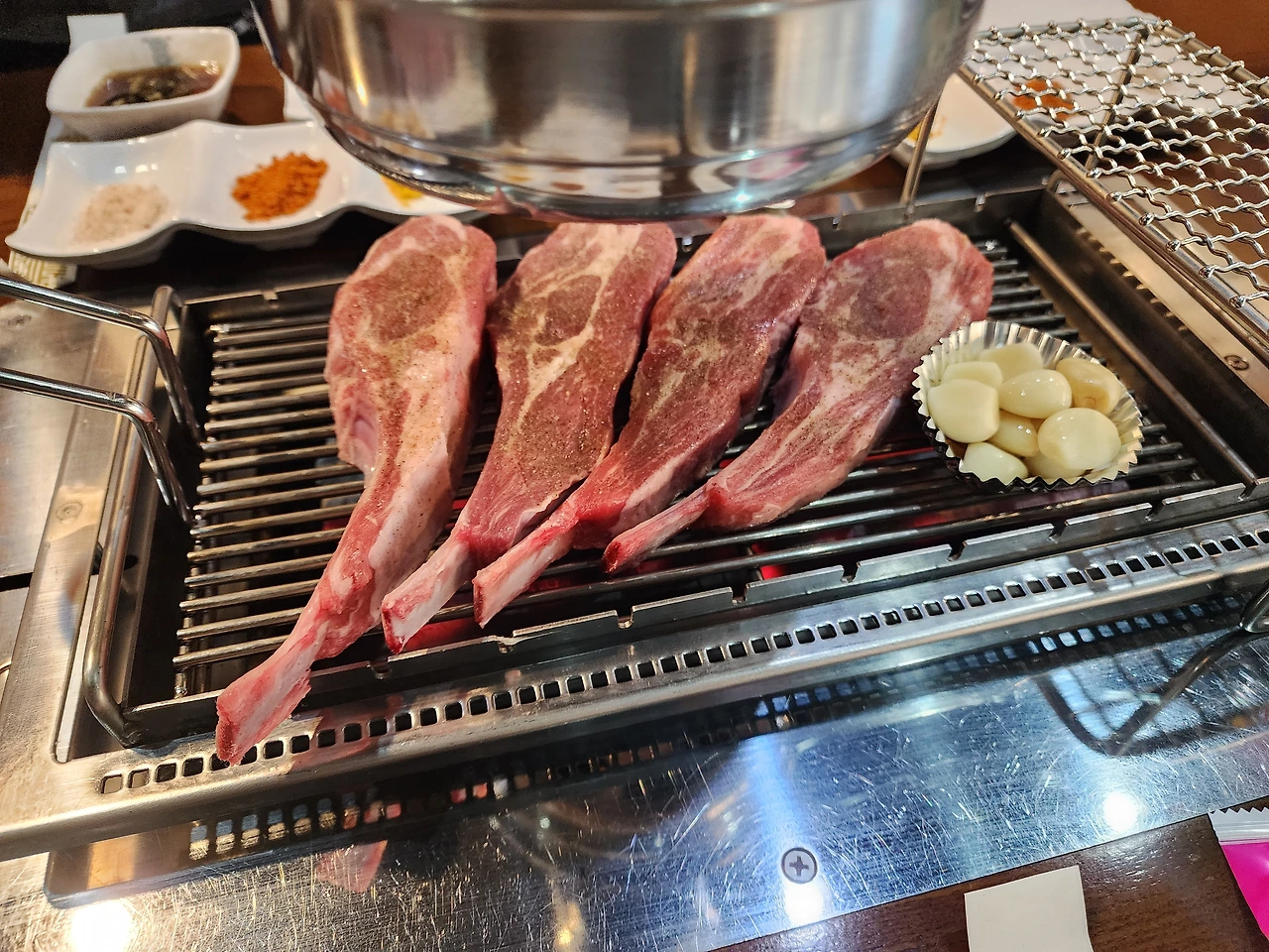 늦긴 늦은 모양인지 불판에 벌써 양고기 숄더랙이 떡하니 올려져 있었다.