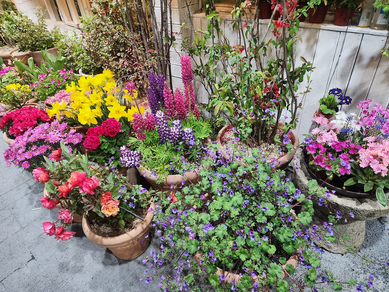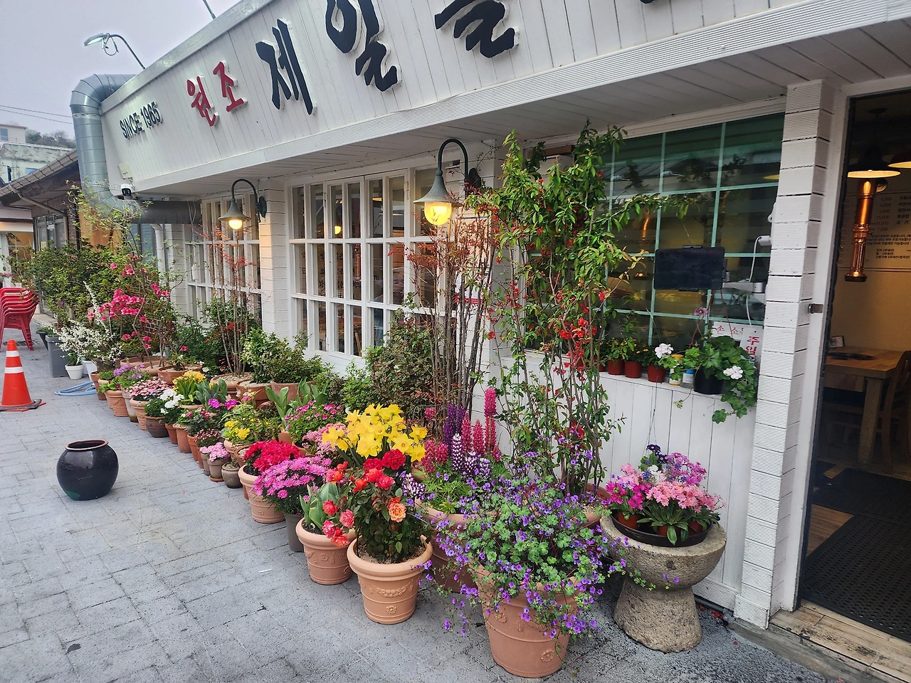 몇 년 만에 찾아간 돌곱창구이집 앞에도 색색의 꽃들이 만발을 하고 있어서 화사하니 좋았다.