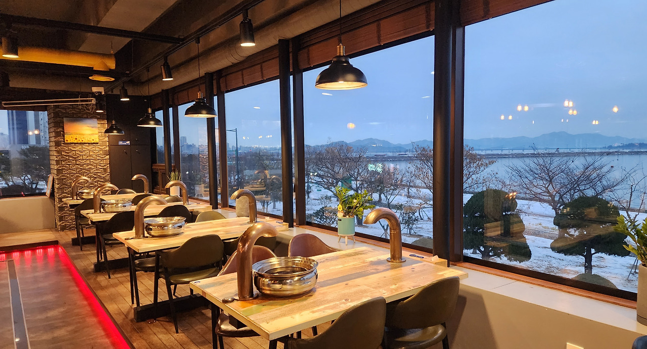 고깃집에 들어갔더니 일찍 와서 그런지 손님이 별로 없다. 그래도 한적하게 멋진 뷰를 볼 수 있어서 좋았다.