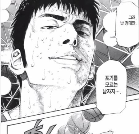 있는 힘을 내어 스피드를 내기 시작했다. 이러다 쓰러지면 죽기밖에 더 하겠나 싶은 각오로 내달렸다. 만화 슬램덩크에서 땀에 흠뻑 젖어 그로기 상태인데도 연거푸 3점 슛을 날리는 정대만이 생각났다. 드디어 그 아저씨 등 뒤까지 바짝 붙었다. 키 190cm의 그 아저씨는 어깨너비까지 나와 비슷했다. 어쩌면 오늘 이 대회를 하기 전의 나와 지금의 내가 달리기 시합을 하는 건 아닐까 하는 생각이 스쳐 지나갔다.