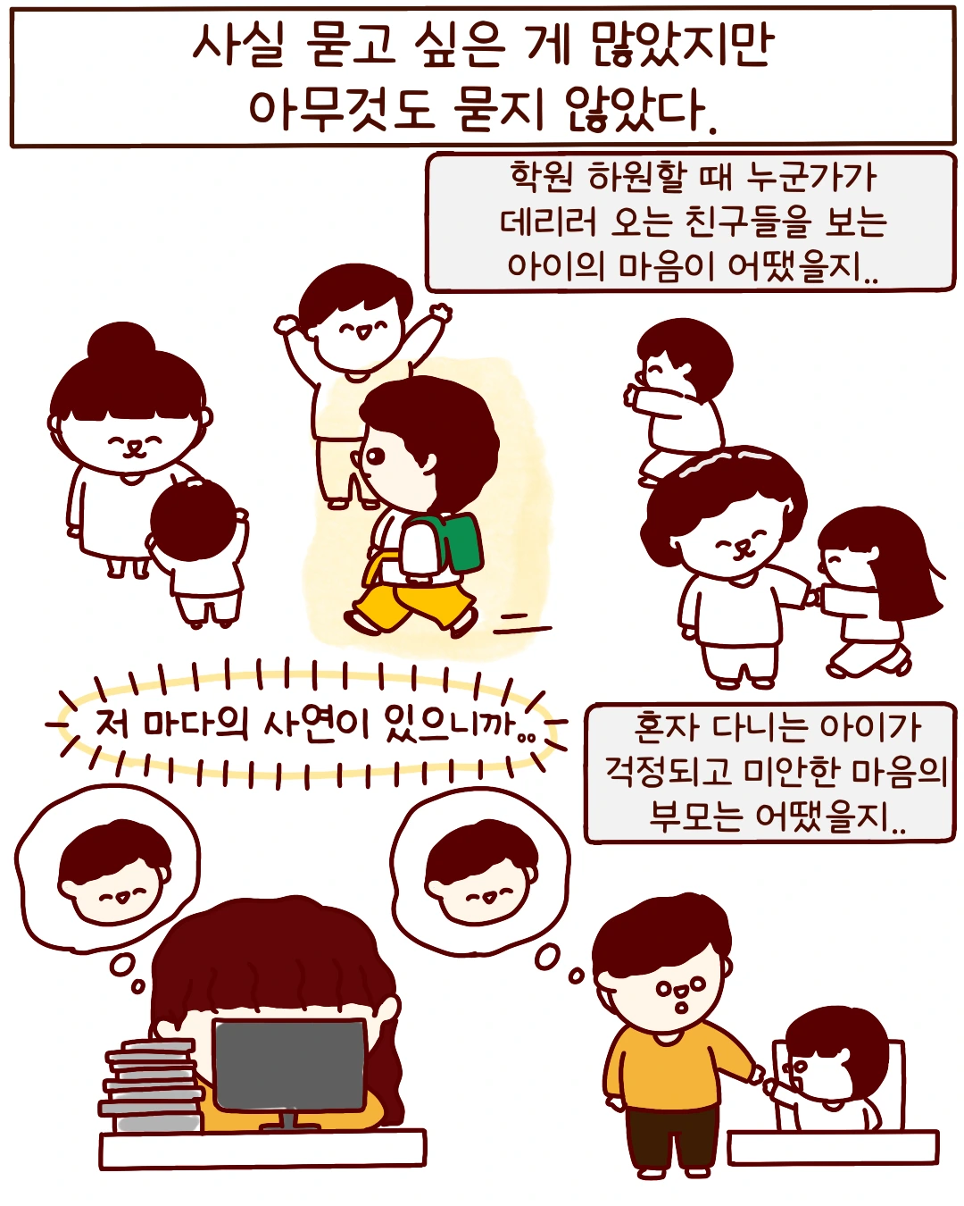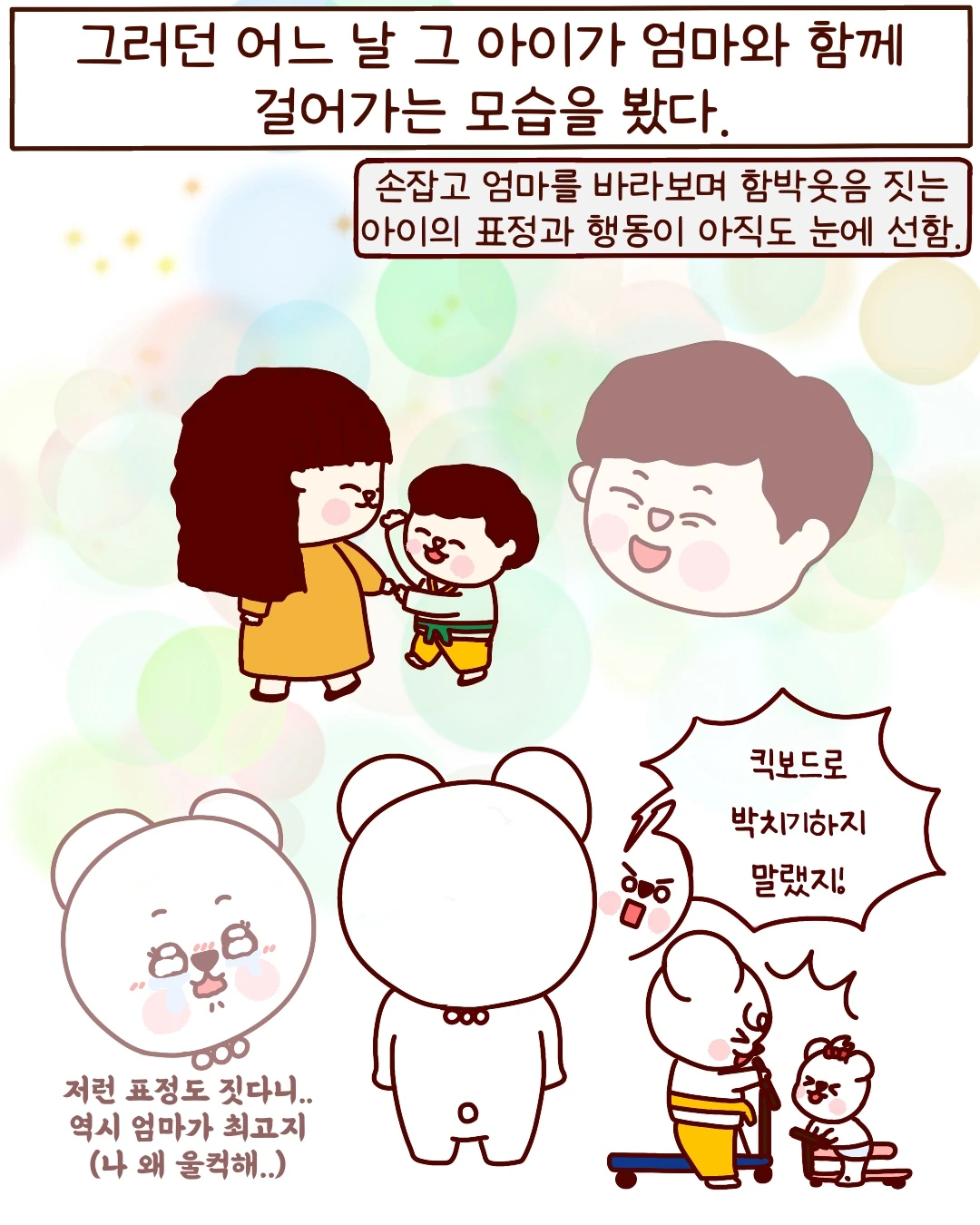 말도 표정도 많지 않은 아이가 엄마와 함께 갈 땐 함박웃음을 지으면서 쉴 새 없이 이야기를 하더군요.